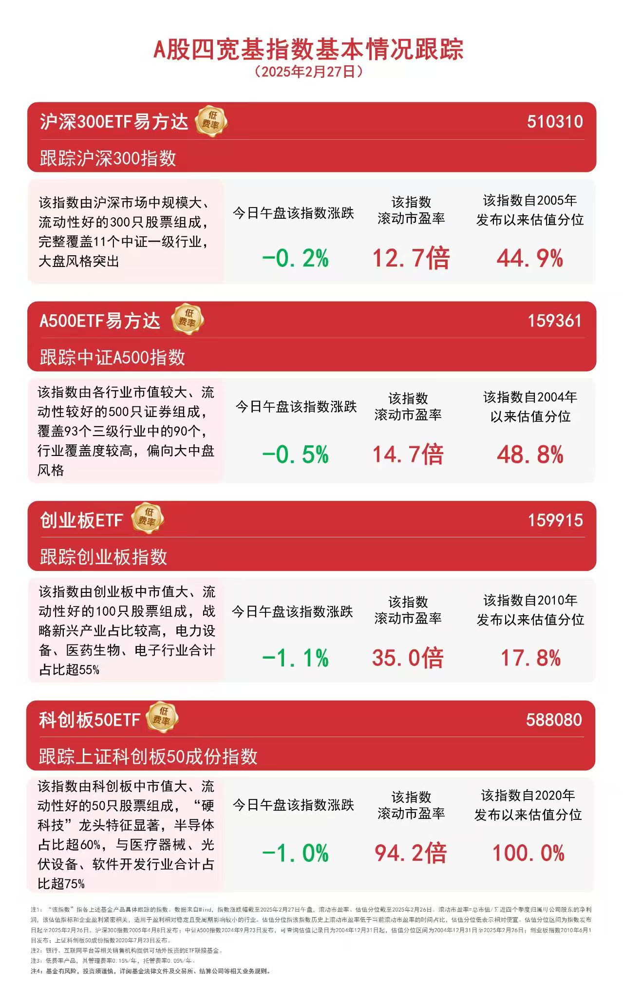 A股早盘震荡调整,全市场半日成交额1.3万亿元,较上日半天放量超1600亿元,盘面上,海南自贸区、固态电池、大消费板块板块涨幅居前,铜缆高速连接、国资云、CPO板块跌幅居前。截至午盘,中证A500指数下跌0.5%,沪深300指数下跌0.2%,创业板指数下跌1.1%,上证科创板50成份指数下跌1%。 |
