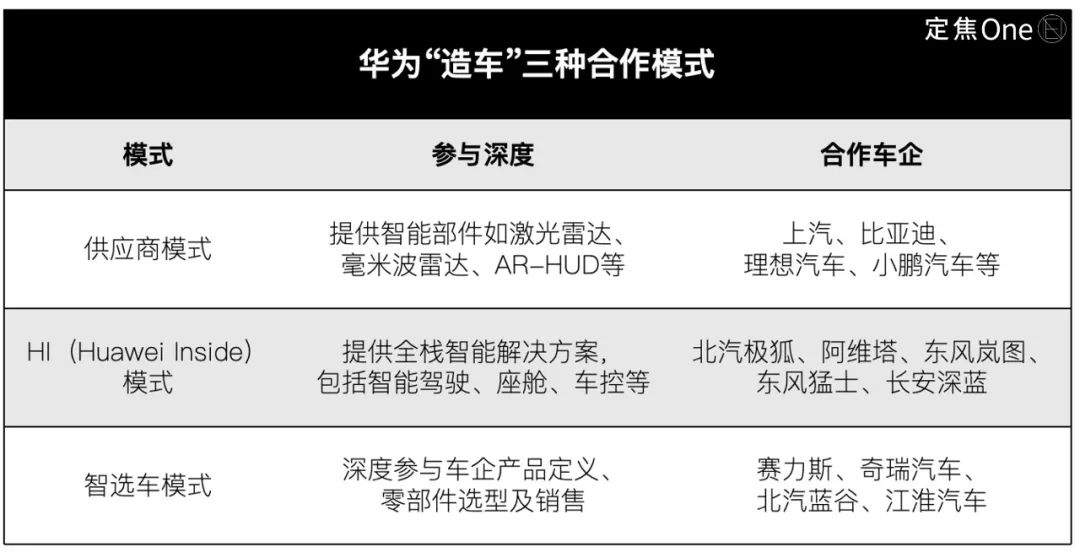 智界是第二梯队,技术合作初显成效,靠R7车型销量上涨,但急需爆款逆袭。享界和尊界是第三梯队,享界销量未成气候,尊界受限于市场定位。 二级市场对华为概念股的追捧,也基本全看问界销量,以赛力斯为标杆。一位二级市场人士对「定焦One」表示,问界销量好,赛力斯股价涨,带动北汽、江淮跟涨,反之集体跳水。 问界的逆袭并非很多人以为的那样,全靠华为输出、赛力斯躺赢。赵枫总结,它是华为全力投入+赛力斯All in增程+避开价格战红海的结果,“30-50万元新能源SUV年需求超百万辆,且早期市场空白”。 智选车模式需要双方高度协同,带来的好处是销量上涨、品牌溢价、制造升级,比如,问界M7、M9的爆款效应。 但局限在于,合作车企需让渡部分主导权,且执行力要强,需具备快速响应市场的能力,例如,赛力斯自建渠道应对产能爬坡。 对于车企来说的负面影响是可能丧失自主权、品牌价值被稀释。比如,赛力斯被质疑为“代工厂”,用户认知中“问界=华为”。 前三界目前的销量与合作深度成正相关。而合作车企的战略配合度,决定了华为的合作深度。结合多位受访者的观点,论合作深度,问界>智界>享界,尊界尚未交付,还不明确。 华为对问界的介入最深,全面参与产品定义、研发设计、供应链管理、销售渠道及品牌运营,线下门店优先展示问界,初期营销资源集中投放。结果就是问界成为销量主力,也是车BU利润来源。 奇瑞制造能力强,智界的整车工程主导权在奇瑞;北汽对享界品牌的主导权也较大,但从门店选择性展示智界、享界的车型来看,华为对两者的渠道资源分配弱于问界。 张卫表示,智界、享界想销量爆发,要么是华为投入更多资源,要么是自己有杀手锏,比如颠覆性产品。智界(奇瑞)、享界(北汽)后续车型要找准产品定位,避免智界S7、享界S9的高端纯电困局,避免与现有产品线重叠,“鸿蒙智行产品存在内部竞争、互相分流的情况,如智界R7和问界M7、享界S9和问界M9”。 华为的资源有限(如华为门店展示空间)、管理层的精力有限,对联盟中合伙伙伴的策略自然不同。销量不达预期的合作伙伴也需要警惕华为资源向其他车企倾斜的风险。 赵枫补充说,还未交付的尊界有战略价值,试水超豪华市场一旦成功,华为就靠“技术溢价”打破了国产车价格天花板。 结语 华为研发高阶智驾ADS 3.0、鸿蒙座舱等系统耗资百亿级,单靠问界一个爆款还回不了本,拉更多车企加入联盟、平摊研发费用是必然。华为与上汽合作后,终于下探至20万元以下市场。乐观的声音认为,尚汽可以借助上汽的制造能力和渠道资源快速铺量。 但尚界面临的合作复杂度和市场环境更高,复制问界的销量巅峰难度很大。上汽董事长陈虹曾说“把智能座舱和智能驾驶都交给华为,上汽就没有灵魂只剩躯体了”,推测上汽不愿放弃主导权,尤其是尚界需在主流市场与比亚迪、特斯拉正面对抗。 2025年,市场窗口即将关闭,增量市场转向存量厮杀,新的合作伙伴入场已无蓝海红利。 成为爆款的前提是要找到一个已经被市场证明的优质赛道,但有潜力的赛道几乎都被占了。比如,理想、特斯拉的赛道被问界、智界占了。