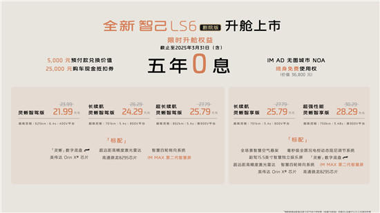 中国经济网北京2月27日讯 在2024年新能源赛道卷价格、卷价值、卷技术的新常态下,智己LS6以销量数字证明了自己的实力:每卖出6辆中大型纯电SUV,就有1辆是智己LS6。昨日(2月26日),全新智己LS6剧院版正式上市,新车全系升舱不加价,5款配置车型限时权益价21.99万―28.29万元。 事实上,因20万―30万元纯电SUV市场产品兼具高价值比和豪华配置,所以市场需求十分旺盛。目前,至少有20至30款主流车型在售,竞争十分激烈。在此背景下,全新智己LS6剧院版“入门即满配”,将灵蜥数字底盘、智驾和智舱等全部拉满。软硬件升级、智舱体验全维焕新的同时,进一步提升新车在20万级纯电SUV中的市场竞争力。 具体来看,全新智己LS6剧院版全维升舱,将座舱的舒适性、娱乐性以及智能化拉升至新高度。“MPV级大彩电”IM MAX第二代智慧屏全系上车是“升舱”的一大亮点,与LS6“零重力、贵妃椅、大床房”三躺模式搭配,拓展出百变空间。17.3英寸3K高清屏幕,联动全车21个扬声器打造的WANOS 7.1.4 全景声场,打造剧院般沉浸视听享受。 值得一提的是,LS6剧院版智能化体验将实现大进化。智驾方面,端到端2.0智驾大模型即将上车,实现ETC收费站自主通行等场景;年内还将实现“车位到车位”的自主通行。智舱方面,智己携手阿里旗下斑马智行共建“AI生态座舱”,基于苹果同源AI引擎的强大技术底座,落地更多AI新奇体验。此外,超炫智舱将深度融合DeepSeek大模型;迎来自定义语音唤醒词、方言语音等500余项功能和体验优化。智驾方面,IM AD直觉智驾已实现“全国都好开,有空就能停”。 权益方面,智己汽车诚意加码:3月31日前锁单,可享5000元预付款兑换价值25000元购车现金抵扣券,即直享21.99万―28.29万元限时权益价;及价值36800元的IM AD无图城市NOA终身免费使用;同时,还有“5年0息大额贷”金融方案,购车零压力。 (责任编辑:张晓波 )