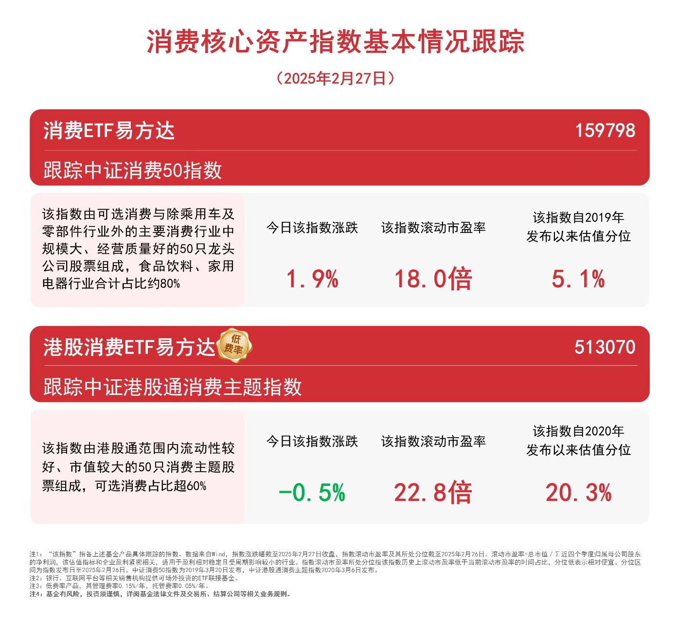 截至收盘,中证消费50指数上涨1.9%,中证港股通消费主题指数下跌0.5%。 今日,商务部表示,将打好政策“组合拳”,加快完善服务消费“1+N”政策措施体系,推动出台支持家政服务消费、数字消费、体育消费等一系列政策 ...