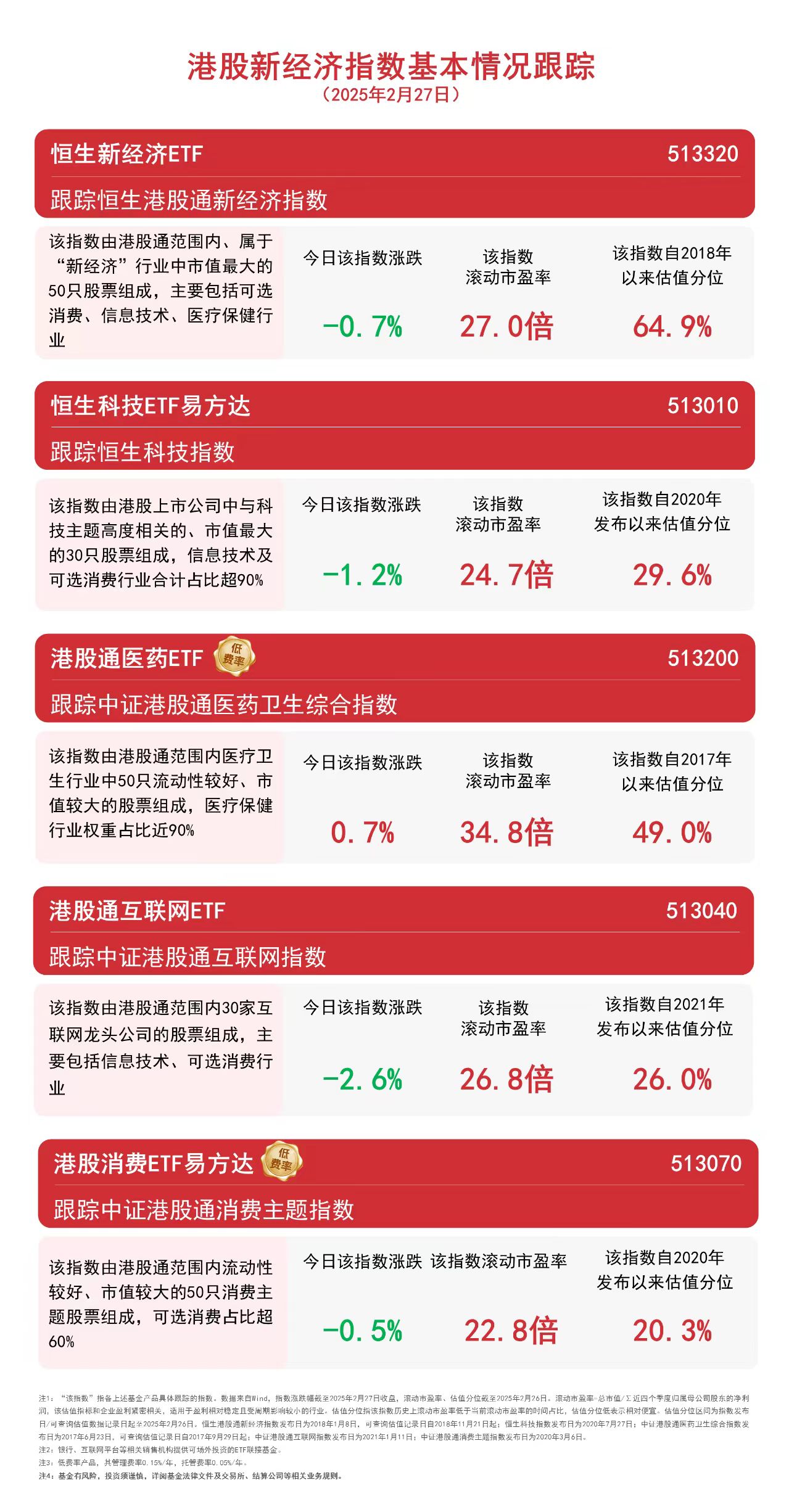 港股早盘冲高后震荡回调,盘面上,医药股、地产股等走高,科技股调整。截至收盘,中证港股通医药卫生综合指数上涨0.7%,中证港股通消费主题指数下跌0.5%,恒生港股通新经济指数下跌0.7%,恒生科技指数下跌1.2%,中证 ...