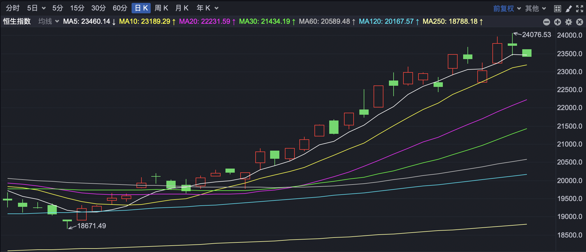 每经记者 曾子建 每经编辑 肖芮冬 2月28日早盘,港股市场小幅低开。截至发稿前,恒生指数报23503点,下跌0.91%;恒生科技指数报5800点,下跌1.27%。 盘面上,盘面上,科网股涨跌不一,小米集团涨近5%。小米昨晚发布新车,受到市场关注。此外,网易涨0.45%,京东集团、美团、联想集团、阿里巴巴等多股跌超1%。其他方面,消费股继续走好,奈雪的茶涨超10%,茶百道涨超7%。 跨境ETF方面,香港消费ETF涨超2%,恒生创新药ETF、恒生医疗ETF基金、恒生消费ETF等小幅上涨。此外,标普油气ETF涨近2%,沙特ETF再度走强,涨近1%。 |