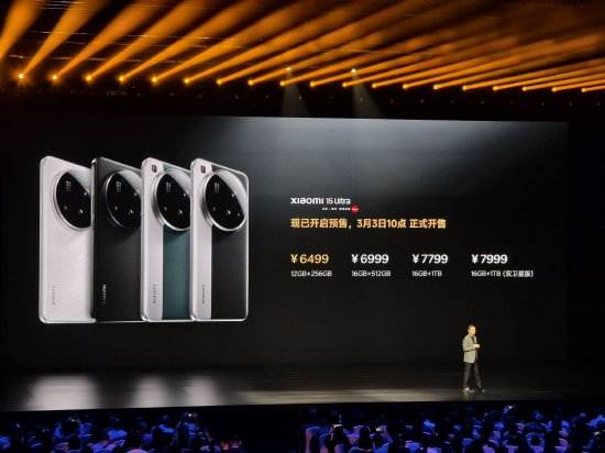 同辰科技讯 2月27日晚间消息,在今日的小米15 Ultra暨小米SU7 Ultra新品发布会上,小米集团总裁卢伟冰发表演讲。 发布会上,小米15 Ultra正式发布,采用全等深微曲屏,拥有经典黑银、松柏绿、白色、黑色四款配色。配备2K超清分辨率屏幕,3200nits超级阳光屏,还有小米龙晶玻璃2.0、超声波指纹、立体双扬声器。 小米15 Ultra搭载骁龙8至尊版处理器,配备双路翼型环形冷泵散热,搭载6000mAh小米金沙江电池;搭载小米星辰通信,支持无网通话,实现最远7km双向通话;并全系搭载天通卫星通信,全球首发手机直连卫星数据功能;还有北斗、天通双卫星版。 影像方面,小米15 Ultra搭载徕卡光学四摄,支持28倍无损变焦。同时搭载徕卡1英寸主摄,一英寸大底,f/1.63超大光圈;以及徕卡2亿超长焦,1/1.4″ 主摄级超大底,f/2.6大光圈;配备第二代小米人像大模型,大师人像再升级。 售价方面,12+256GB版6499元,16+512GB版本6999元,16+1TB版本7799元,16+1TB双卫星版7999元。 责任编辑:何俊熹 (责任编辑:董萍萍 )
