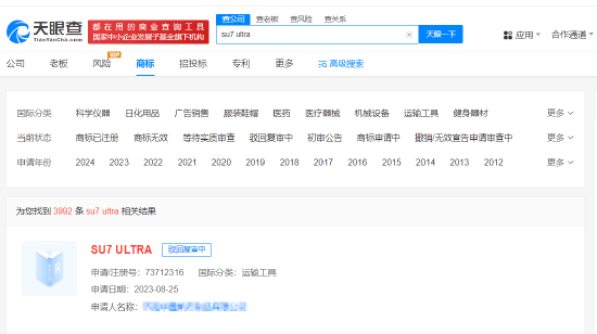 小米SU7 Ultra在开售2小时内突破10000台销量,定价大幅下降至52.99万元,目标销量为1万辆。小米去年申请了多枚与SU7 Ultra相关的商标,其中部分商标已处于初审公告阶段。济南一公司申请注册的“SU7 Ultra”商标已被 ...