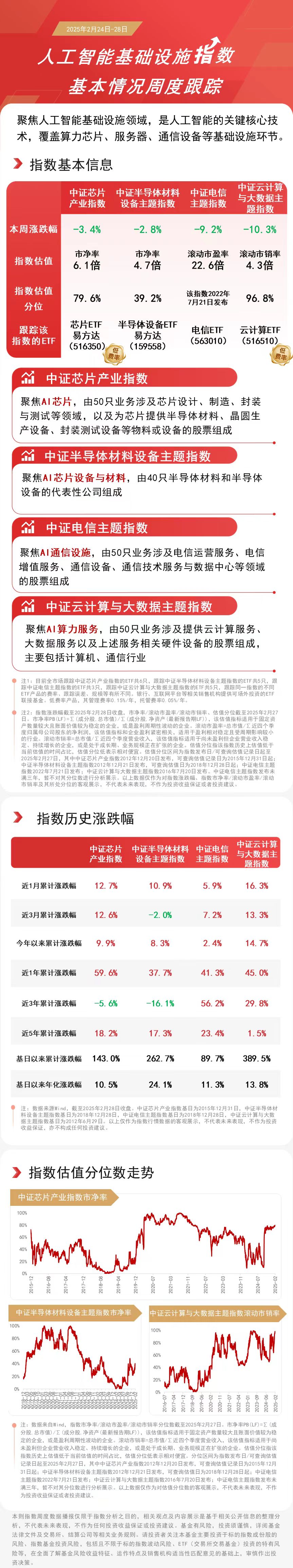 本周,中证半导体材料设备主题指数下跌2.8%,中证芯片产业指数下跌3.4%,中证电信主题指数下跌9.2%,中证云计算与大数据主题指数下跌10.3%。 申港证券认为,从下游场景看,国内AI应用的扩大有望传导到数据中心算力需 ...