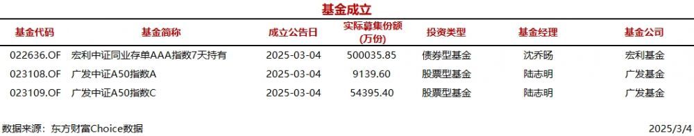 今日3只基金公告成立
