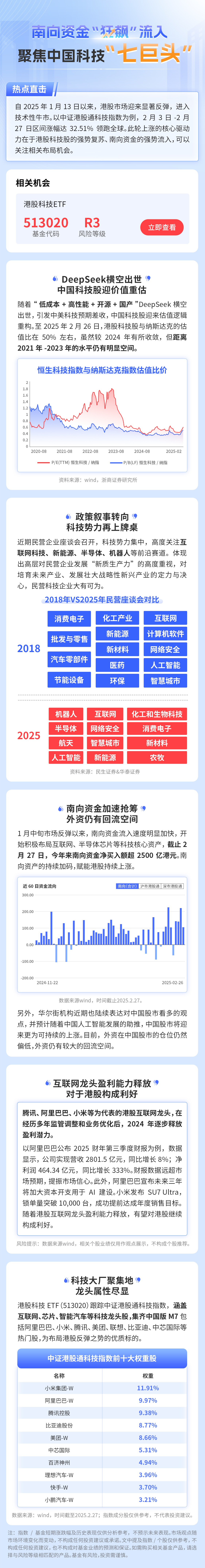 港股强势反弹,港股科技ETF(513020)盘中涨超2.2%,聚焦中国科技“七巨头” ...