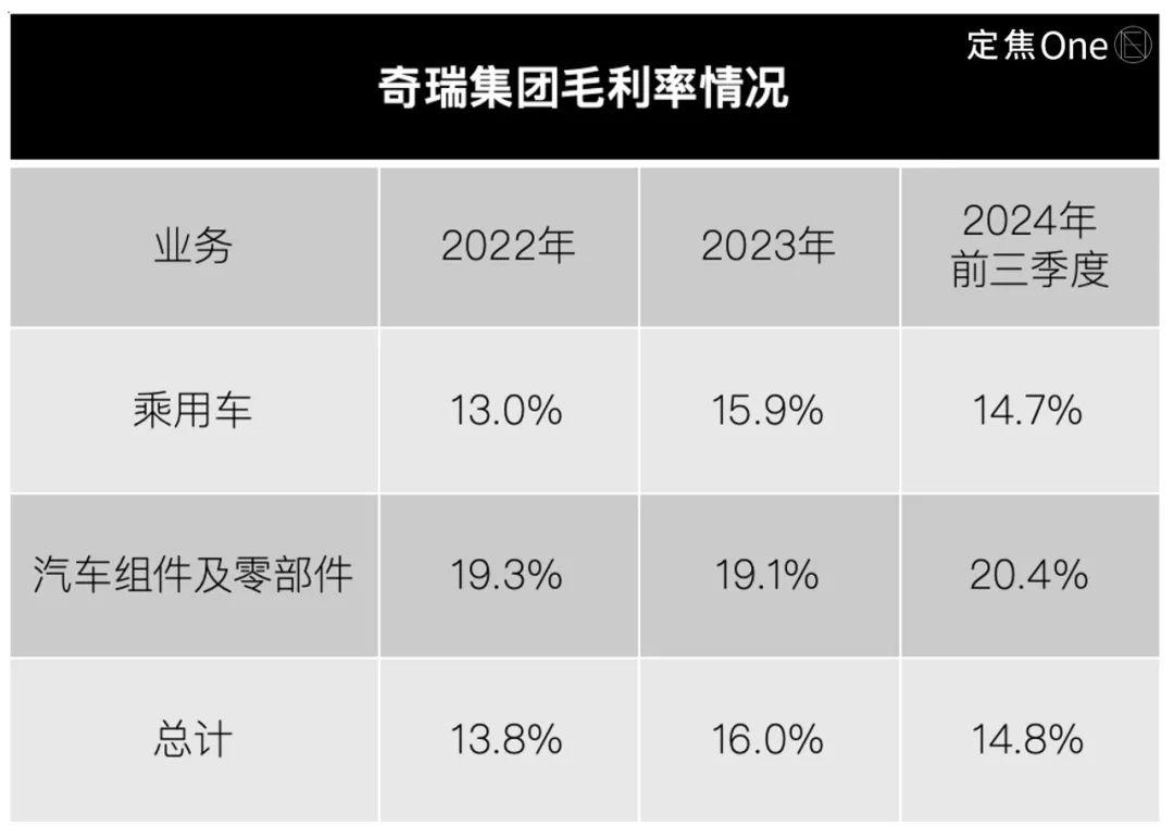 新能源转型窗口期还剩3年。 定焦One(dingjiaoone)原创 作者 | 金_[ 编辑 | 魏佳 你可能想不到,现在在海外卖得最火的中国车既不是比亚迪(002594),也不是吉利,而是一家安徽车企,当年靠奇瑞QQ红遍大江南北的奇瑞。 就在几天前(2月28日),它向港交所提交了上市申请,准备冲刺IPO。 要知道,奇瑞是国内销量前十的国产车企中唯一还没上市的“独苗”,这次如果成功敲钟,意味着中国自主品牌车企集体步入资本市场。 透过600多页招股书,我们摘取了几组数据,勾勒出奇瑞的大致情况。 首先看基本面: 2024年前9个月收入1821亿元, 净利润113亿元,净利润率6%出头。 平均卖一辆车的收入是10.7万元、毛利是1.6万元,净利润约为0.7万元。 品牌格局: 旗下五个品牌(奇瑞、捷途、星途、iCAR、智界),其中奇瑞主品牌扛起六成销量,第二品牌捷途增速最猛,对标豪华车的星途增速其次,这三个品牌基本以燃油车销售为主,是公司的最重要的销量和营收来源。而作为新势力培育的纯电品牌iCAR、与华为合作的智界,都还在发育期。 钱从哪来: 燃油车是现金奶牛,贡献了3/4的收入,新能源汽车只占1/4。 海外是高溢价市场,贡献了44%左右的销量和收入,奇瑞汽车在部分地区的售价比国内高出50%以上。 资金和债务情况: 流动资产1543亿元,账上躺着358亿元现金,但流动负债1625亿元,压力不小,应付账款及票据就占1052亿元,还有174亿银行贷款。 总体来看,奇瑞汽车和手机界的“非洲之王”传音(TECNO)有点像――在国内不是顶流,但在海外市场闷声发大财。不过,奇瑞的支柱还是燃油车生意,新能源版块落后于比亚迪这些新能源车企。 过去,奇瑞在融资上很“吃亏”――不能像比亚迪、吉利这些上市车企搞百亿定增,只能靠利润滚雪球。如果此次港股IPO成功,未来三年的新能源转型进度,将是资本市场关注的重点。 日赚四千万, 燃油车仍是“钱袋子” 把奇瑞28年的发家史捋下来,简直就是一部“年少成名、中年失意、海外破局”的三部曲。 1999年造出第一辆轿车后,奇瑞连续9年霸榜自主品牌销量榜,且连续22年蝉联中国品牌出口冠军,巅峰时期,全球每卖出3辆中国车,就有1辆是奇瑞。