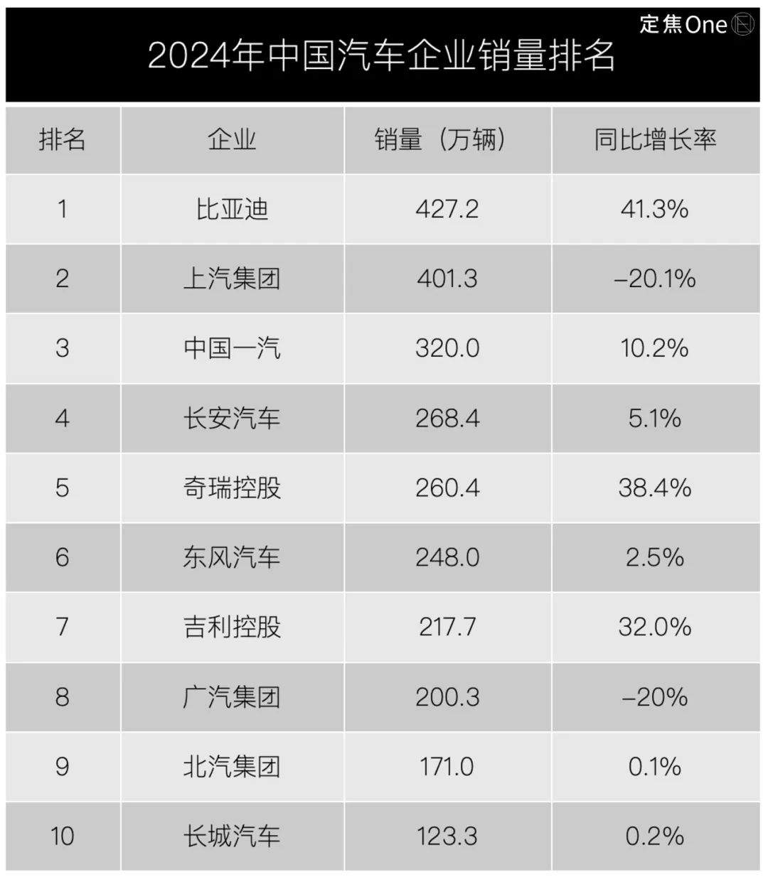但2015年以后,随着SUV热潮兴起、新能源转型加速,守着燃油车基本盘的奇瑞排名出现下滑。经过一系列调整,奇瑞近年在国内销量排在5-8名之间,但凭借出口优势,总销量杀进前五。2024年,奇瑞一共卖出260万辆车,仅落后于比亚迪、上汽、一汽和长安。