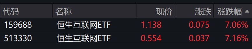 每经记者 叶峰 每经编辑 肖芮冬 港股早盘大幅走强,恒生科技指数涨超4%,快手-W涨超14%,阿里巴巴-W、商汤-W涨超7%,腾讯控股、哔哩哔哩-W、金山软件涨超5%。 受盘面影响,恒生互联网ETF大涨逾7% ...