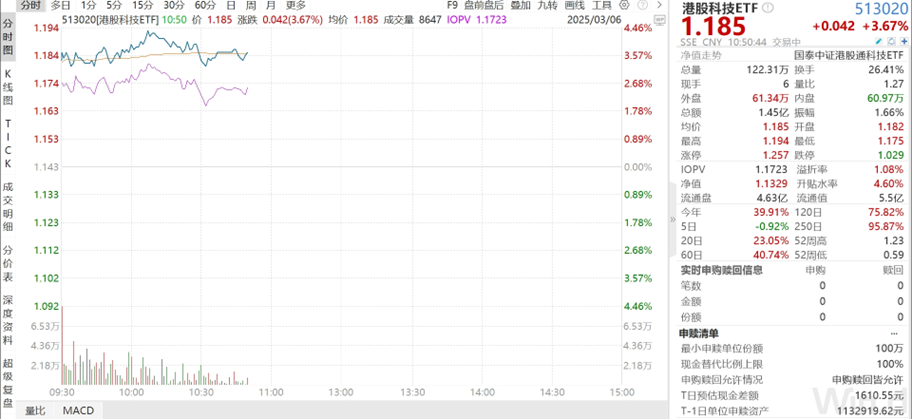 每经编辑 赵云 今日,港股开盘大涨,科技股领涨港股,相关行业ETF——港股科技ETF(513020)最高涨超4%,开盘四十分成交量已经破亿。消息面来看,港股科技股多重利好叠加。 港股科技ETF(513020)中前十 ...