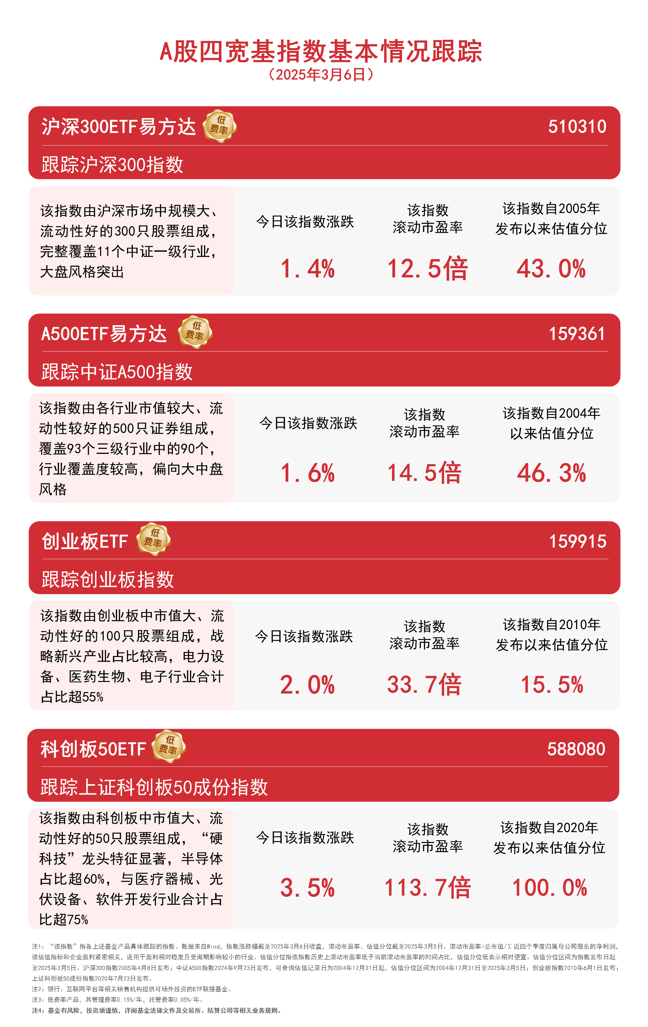 截至收盘,中证A500指数上涨1.6%,沪深300指数上涨1.4%,创业板指数上涨2.0%,上证科创板50成份指数上涨3.5%。 《政府工作报告》起草组负责人表示,国内外多数研究机构认为,中国经济发展还有很大潜力,潜在增长率仍 ...