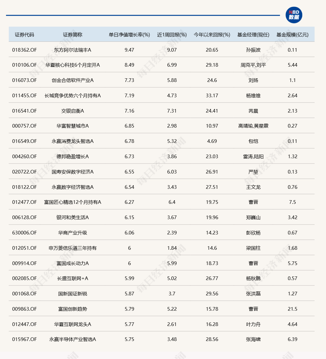每经记者 肖芮冬 每经编辑 赵云 3月6日,市场全天高开高走,创业板指领涨。板块方面,AI智能体、IT服务、游戏、算力租赁等板块涨幅居前,工程机械、钢铁、银行、油气等板块跌幅居前。全市场超4200只个股上涨,沪深两市全天成交额1.91万亿元,较上个交易日放量4126亿元。 下面一起来看今天公募基金的表现。 (注:榜单1、2仅选取灵活配置型、偏股混合型和普通股票型三类产品作为主动基金的代表,纳入统计;债基相关榜单包括各类主、被动债券型基金) 1.单日涨幅榜 2.单日跌幅榜 3.单日债基涨跌幅榜 4.晚间值得关注的消息 【吴清:长期资金长周期考核政策文件将尽快推出】 中国证监会主席吴清3月6日在十四届全国人大三次会议经济主题记者会上表示,财政部、人社部等部门正积极推进长期资金长周期考核政策文件的制定修订工作,目前已征求了相关方面的意见建议,将尽快推出。文件的出台将全面建立全国社保基金五年以上以及年金基金、保险资金三年以上长周期考核机制。证监会在即将推出的公募基金改革方案中,也将进一步提高公募基金三年以上长周期考核比重。 |