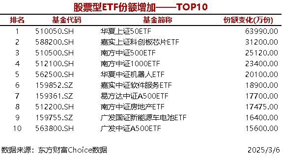 15只股票型ETF份额增加超1亿份,华夏上证50ETF增加6.4亿份