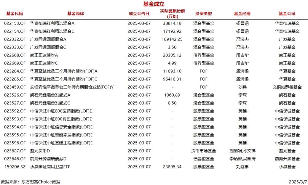 每经AI快讯,据东方财富Choice数据统计,今日共有19只基金公告成立(A/C类分开计算),包括6只混合型基金、6只股票型基金、3只债券型基金、3只FOF、1只货币市场基金。 ![]() |