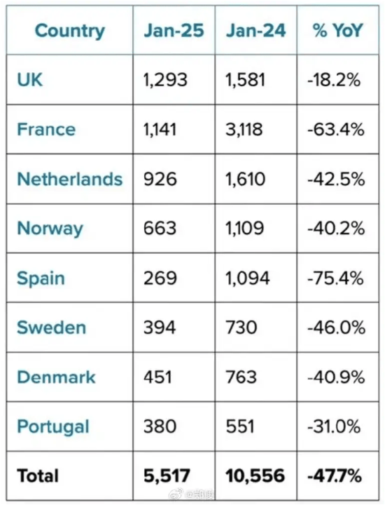 今年1月,特斯拉在欧洲市场销量下跌45%,同期电动车总销量增长37%。德国、法国、英国、西班牙、瑞典、挪威,所有市场全线下跌。比亚迪首次在英国市场超过了特斯拉。2月的情况更糟,特斯拉在德国销量暴跌76%,跌幅高于1月份的59%,而同期德国电动车销量增长31%。 虽然马斯克并没有直接影响到欧洲人的生活,但他与不受欢迎的特朗普政府高度绑定,公开站队极右派政党,干涉欧洲政治选举,依然让他成为了欧洲人的眼中钉。喷漆、打砸、纵火,特斯拉在欧洲的待遇并没有比美国好多少。上周法国图卢兹的一家特斯拉门店遭到人为纵火,导致12辆特斯拉被焚毁。