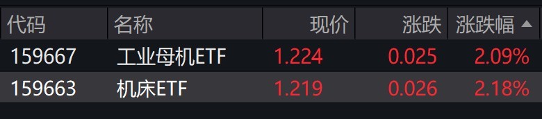 每经记者 叶峰 每经编辑 肖芮冬 机床概念股盘中拉升,创世纪涨超5%,大族激光涨超4%,绿的谐波涨超3%,华工科技、中航高科涨超2%。 受盘面影响,跟踪中证机床指数的机床ETF、工业母机ETF涨超2%。 中证机床指数选取50只业务涉及机床整机及其关键零部件制造和服务的上市公司证券作为样本,以反映机床产业上市公司证券的整体表现。 有券商表示,展望今年,随设备更新和增量政策效果逐渐落地,叠加机床更新周期持续,机床下游需求有望逐渐复苏,推动机床企业经营业绩有望改善。因此,看好制造业复苏和设备更新带来的机床行业需求好转,建议关注各机床行业细分领域龙头。 |