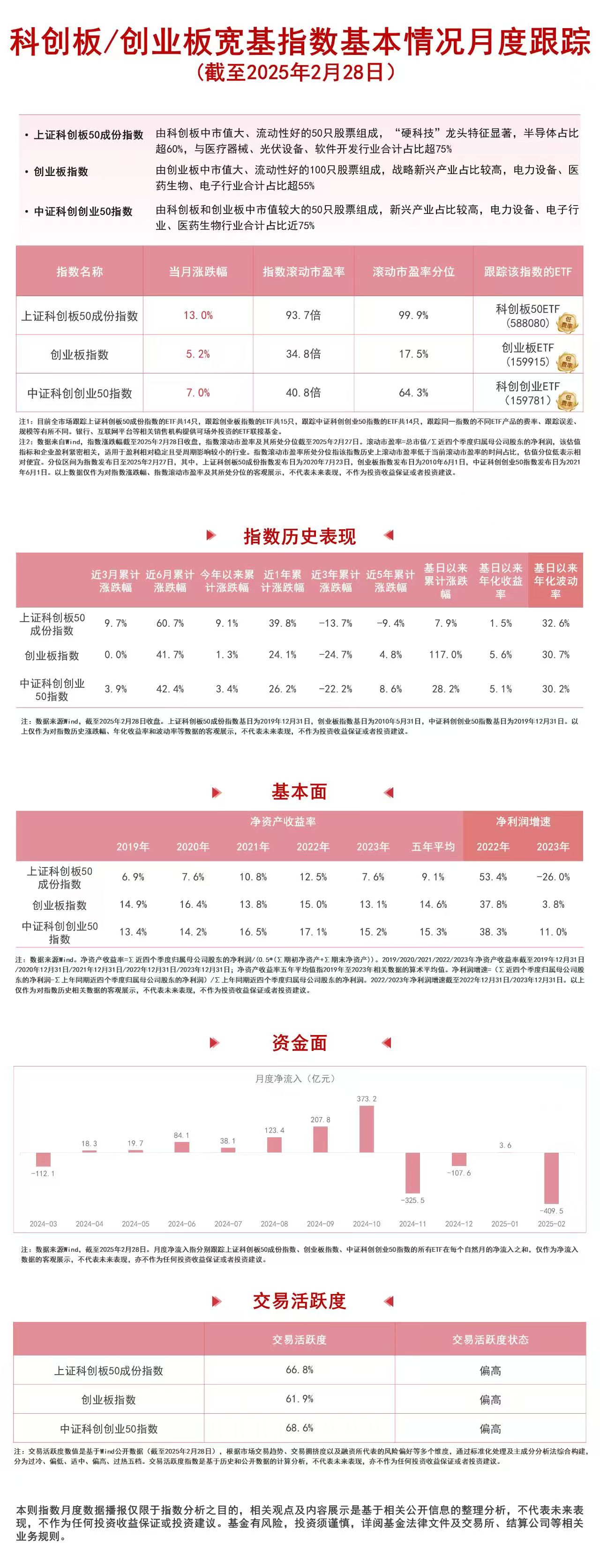 2月,上证科创板50成份指数上涨13.0%,中证科创创业50指数上涨7.0%,创业板指数上涨5.2%。 AI产品榜数据显示,2月份DeepSeek狂揽1.57亿活跃用户,其中网站近亿、App达6181万。中信证券表示,中国资产重估叙事正在形 ...