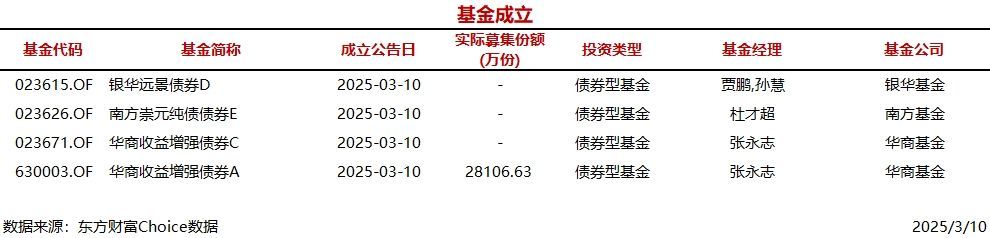 今日4只基金公告成立