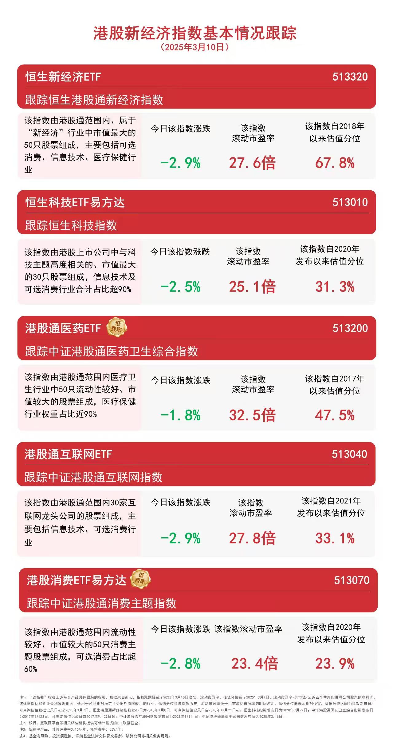 港股震荡调整,盘面上,科技股下挫、医药股及电讯股走低。截至收盘,中证港股通医药卫生综合指数下跌1.8%,恒生科技指数下跌2.5%,中证港股通消费主题指数下跌2.8%,恒生港股通新经济指数下跌2.9%,中证港股通互联网 ...