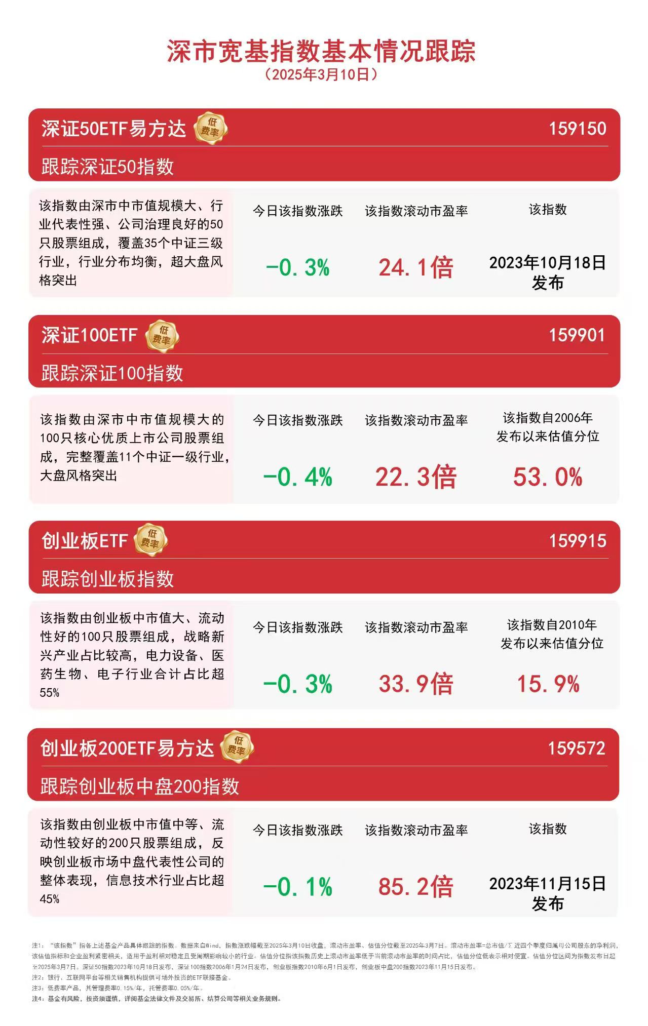 深市小幅调整,创业板200ETF易方达(159572)、深证50ETF易方达(159150)等助力布局 ...