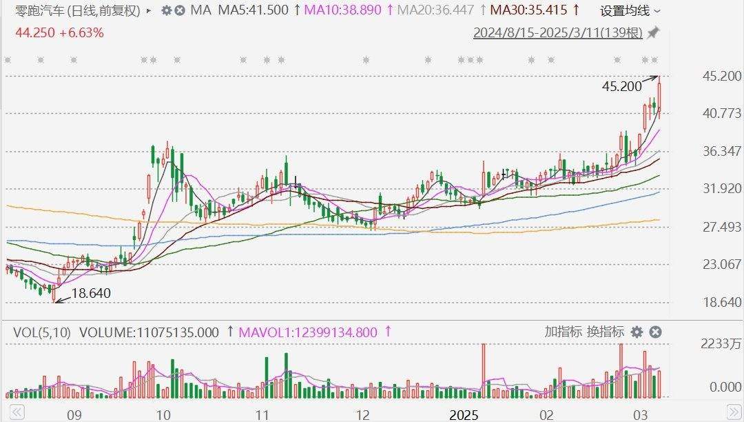 格隆汇3月11日|零跑汽车(9863.HK)盘初拉升涨近9%,报45.2港元,股价创2023年8月以来新高。