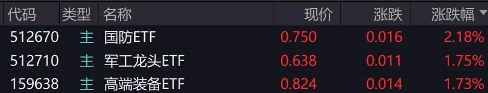 每经记者 叶峰 每经编辑 肖芮冬 军工股早盘走强,中航光电涨超2%,中航沈飞、航发动力、中航西飞、航天电子、中航高科涨超1%。 受重仓股上涨影响,国防ETF涨逾2%,军工龙头ETF、高端装备ETF涨逾1. ...