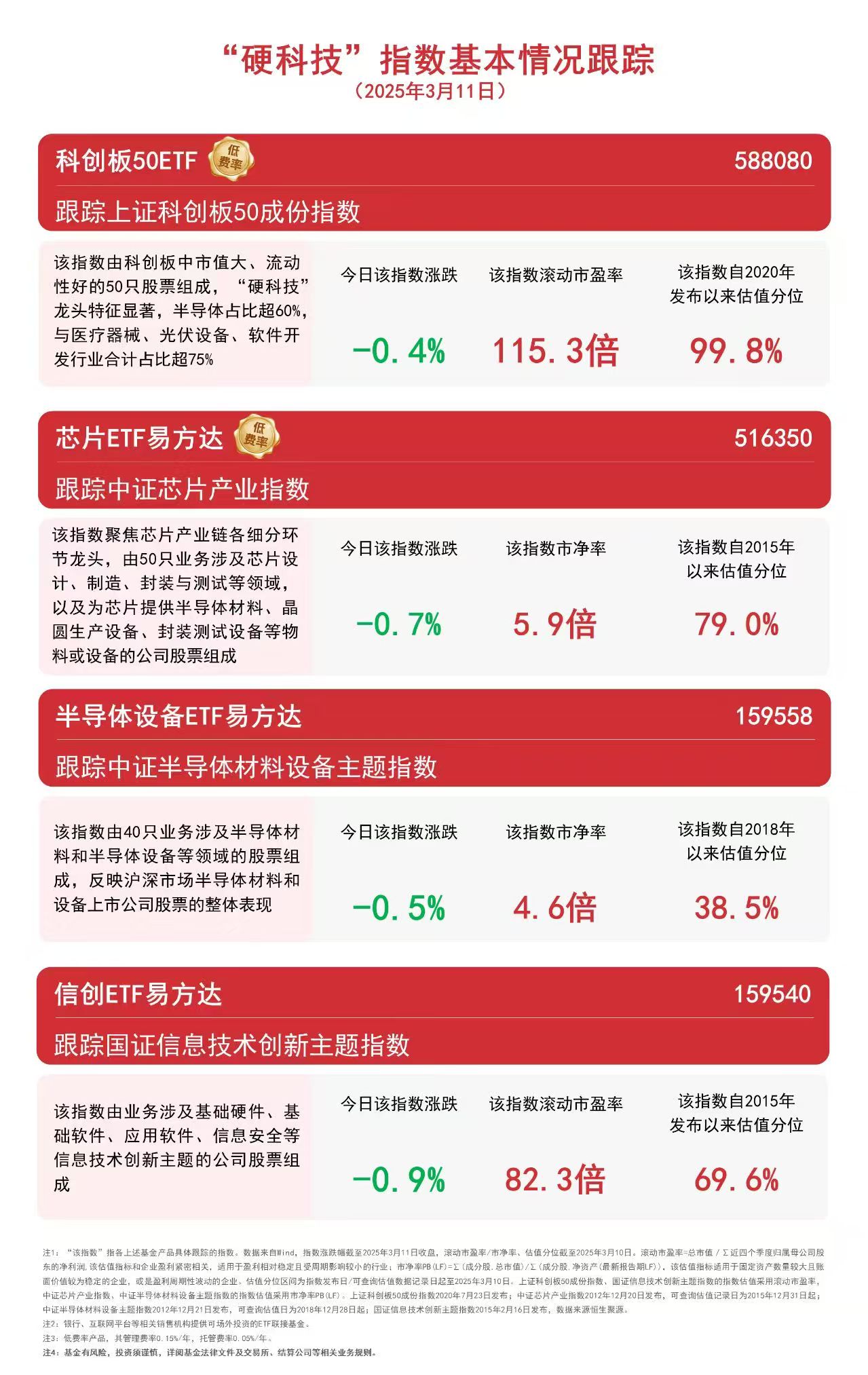 今日,半导体板块震荡调整,“硬科技”指数延续回调。截至收盘,上证科创板50成份指数下跌0.4%,中证芯片产业指数下跌0.7%,中证半导体材料设备主题指数下跌0.5%,国证信息技术创新主题指数下跌0.9%。 ...