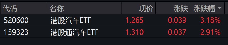 每经记者 叶峰 每经编辑 肖芮冬 港股汽车概念股走强,长城汽车涨超12%,小鹏汽车-W涨超4%,理想汽车-W、比亚迪股份、福耀玻璃涨超2%。 受盘面影响,跟踪中证港股通汽车产业主题指数的ETF涨约3%。 ...