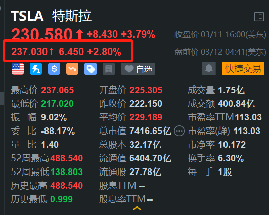 0格隆汇3月12日|昨日止跌反弹近4%的特斯拉(TSLA.US)盘前继续上涨2.8%。消息上,近几个月以来,特斯拉股价在多重利空下持续承压,目前已较2024年12