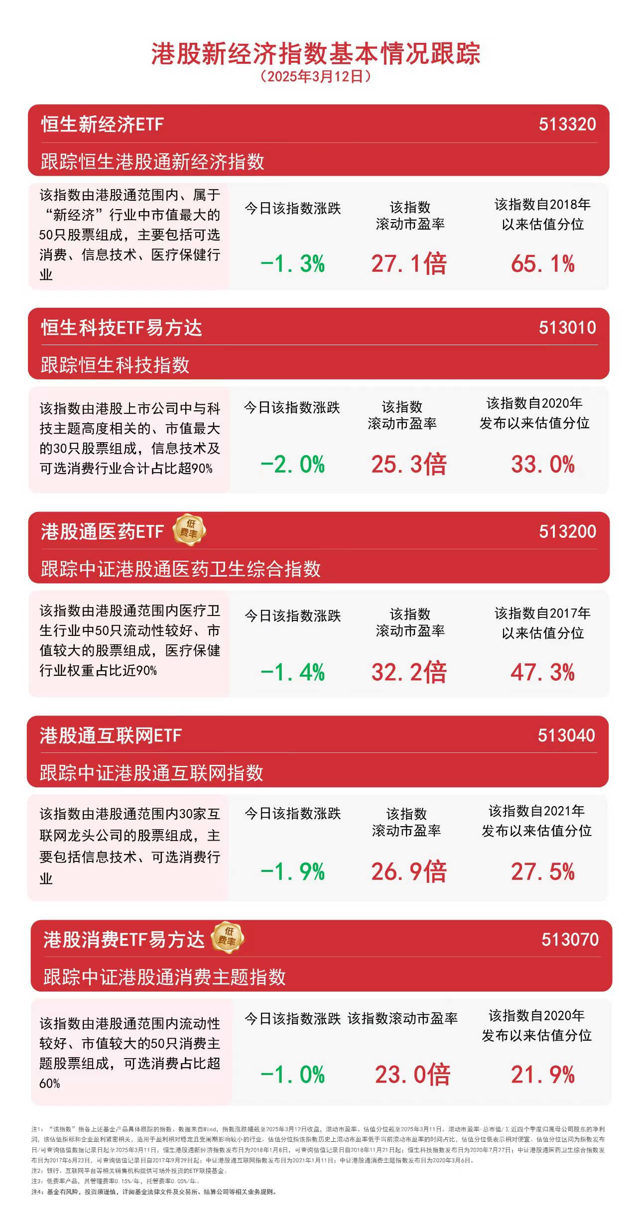 港股高开低走,盘面上,智驾概念股走强,科技、医疗、消费等板块调整。截至收盘,中证港股通消费主题指数下跌1.0%,恒生港股通新经济指数下跌1.3%,中证港股通医药卫生综合指数下跌1.4%,中证港股通互联网指数下跌1.9%,恒生科技指数下跌2.0%。 |
