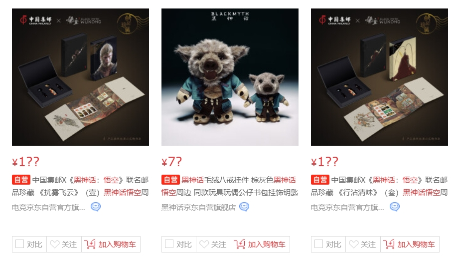 目前,外设及周边配件与细分场景服务成为主机游戏用户付费增量的重点。从上述报告中用户调查数据来看,55.8%的用户会为了改善游戏体验而购买外设及周边配件,48.6%的用户为了满足特定场景需求而进行消费。 主机游戏用户与任天堂、索尼、微软等头部主机厂商存在较高的黏性,使得用户会持续关注厂商新产品和新服务。 3.游戏IP衍生消费升温 游戏IP的跨界合作正成为消费市场的新热点。游戏IP的衍生品不光囊括了徽章、明信片、手办等常规周边,游戏IP的价值边界不断拓展,渗透到消费电子、潮流文化等多个领域。 2024年8月20日《黑神话:悟空》发售当天,据京东方面数据,《黑神话:悟空》实体收藏版和《黑神话:悟空》实体豪华版礼盒共计3万套已在京东售罄。京东平台游戏显卡整体成交金额也同比增长超200%,其中七彩虹联名显卡已售罄。游戏手柄成交量同比增长超6倍,黑神话联名游戏手柄累计售出超5万只。 ![]() 京东上目前仍有多种《黑神话:悟空》周边在售 图片来源:京东截图