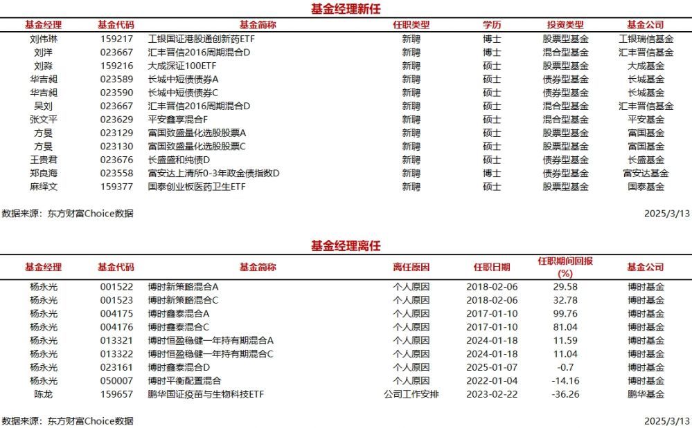 每经AI快讯,据东方财富Choice数据统计,今日新聘基金经理10人,涉及11只基金(A/C类分开计算),主要来自富国基金、汇丰晋信基金等公司。另外,今日有2位基金经理离任。