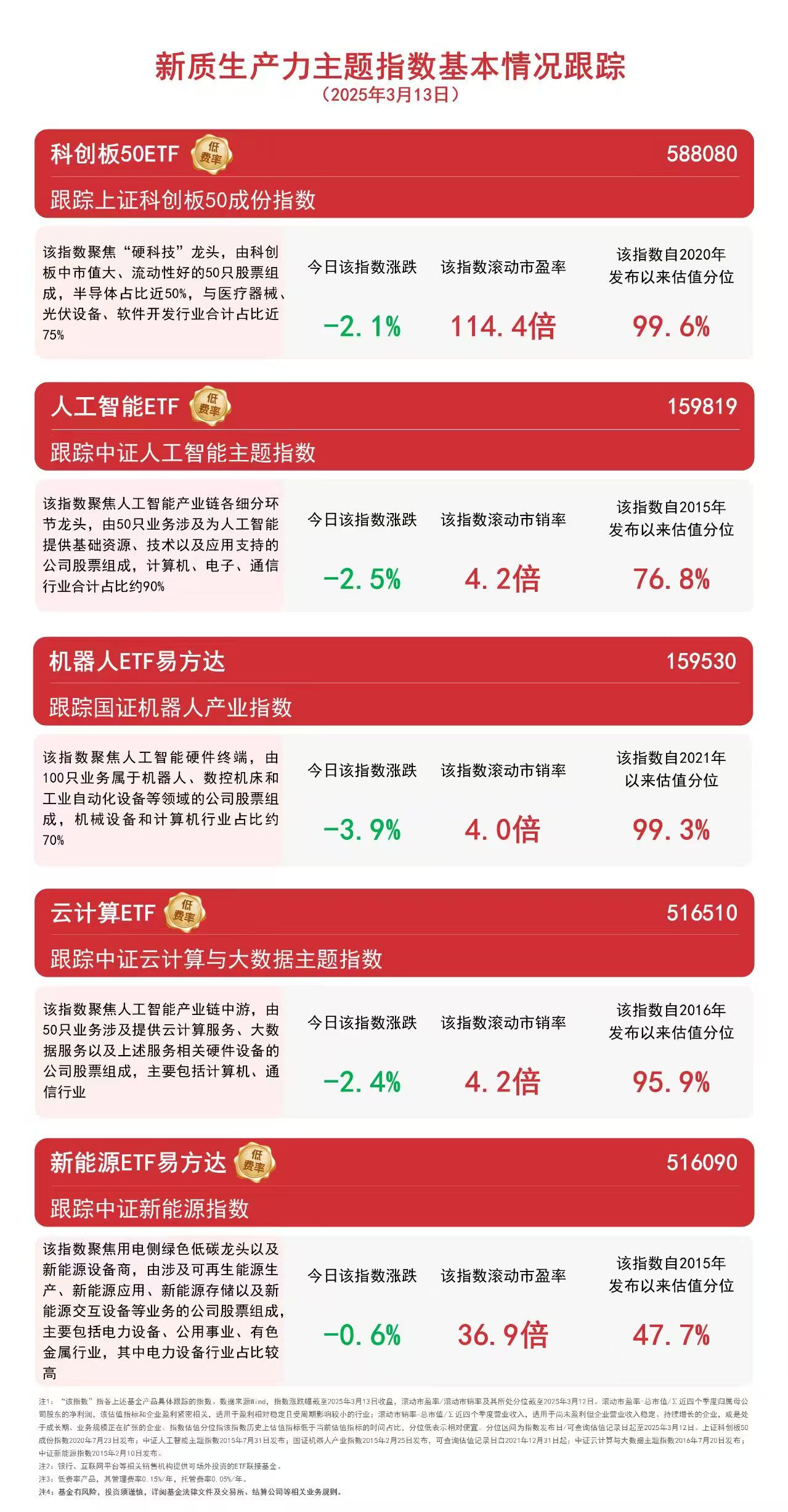 截至收盘,中证新能源指数下跌0.6%,上证科创板50成份指数下跌2.1%,中证云计算与大数据主题指数下跌2.4%,中证人工智能主题指数下跌2.5%,国证机器人产业指数下跌3.9%。 工信部昨日表示,要推动产业体系优化升级, ...