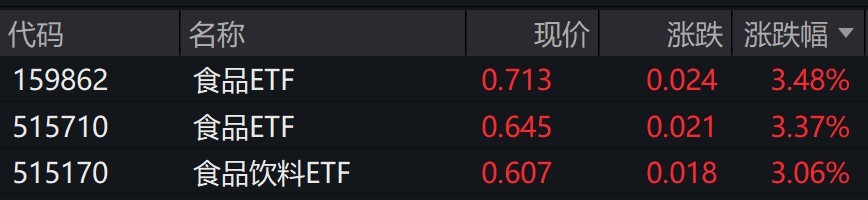 每经记者 叶峰 每经编辑 肖芮冬 食品饮料概念股早盘走强,东鹏饮料涨超6%,伊利股份、泸州老窖涨超5%,五粮液涨超4%,山西汾酒涨超3%。 受盘面影响,跟踪中证细分食品饮料产业主题指数的食品ETF、 ...