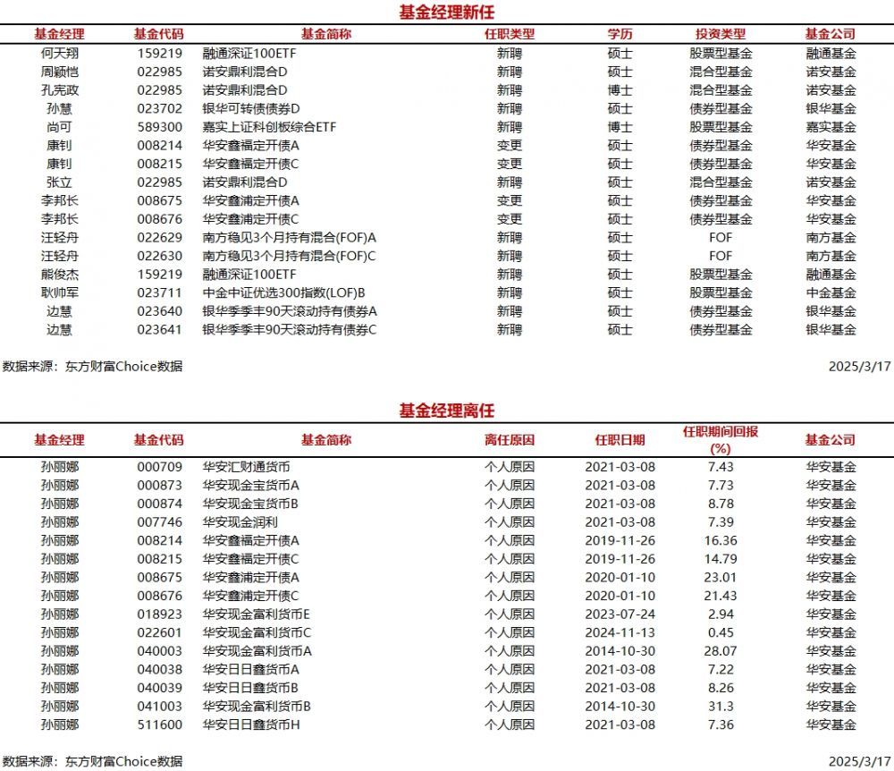 每经AI快讯,据东方财富Choice数据统计,今日新聘基金经理12人,涉及13只基金(A/C类分开计算),主要来自华安基金、诺安基金等公司。另外,今日有1位基金经理离任。 ...