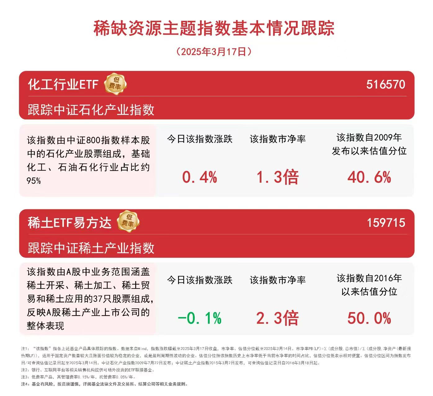 稀缺资源主题指数表现分化,关注化工行业ETF(516570)、稀土ETF易方达(159715)等产品后 ...