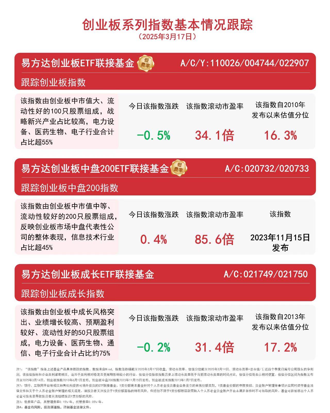 今日,创业板系列指数涨跌不一,盘面上,人形机器人、华为海思、消费电子等板块走强,DRG/DIP、医疗服务等板块调整。截至收盘,创业板中盘200指数上涨0.4%,创业板成长指数下跌0.2%,创业板指数下跌0.5%。 ...