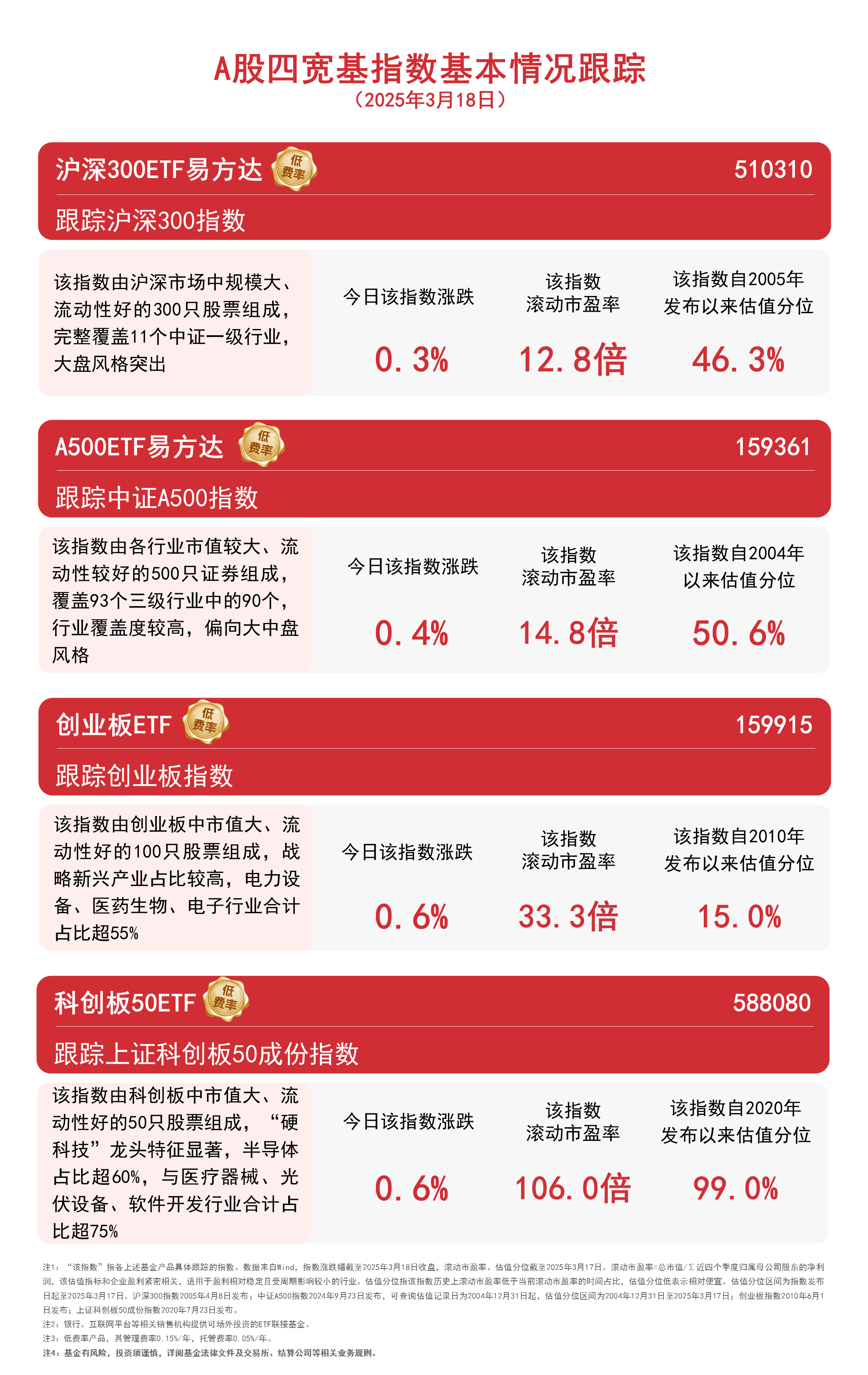 今日市场整体上行,板块题材上,贵金属、港口航运、化学纤维、机器人、CRO、BC电池概念股涨幅居前;游戏、白酒、零售、影视院线、猪肉养殖板块表现弱势。指数方面,中证A500指数上涨0.4%,沪深300指数上涨0.3%,创业板指数上涨0.6%,上证科创板50成份指数上涨0.6%。 |