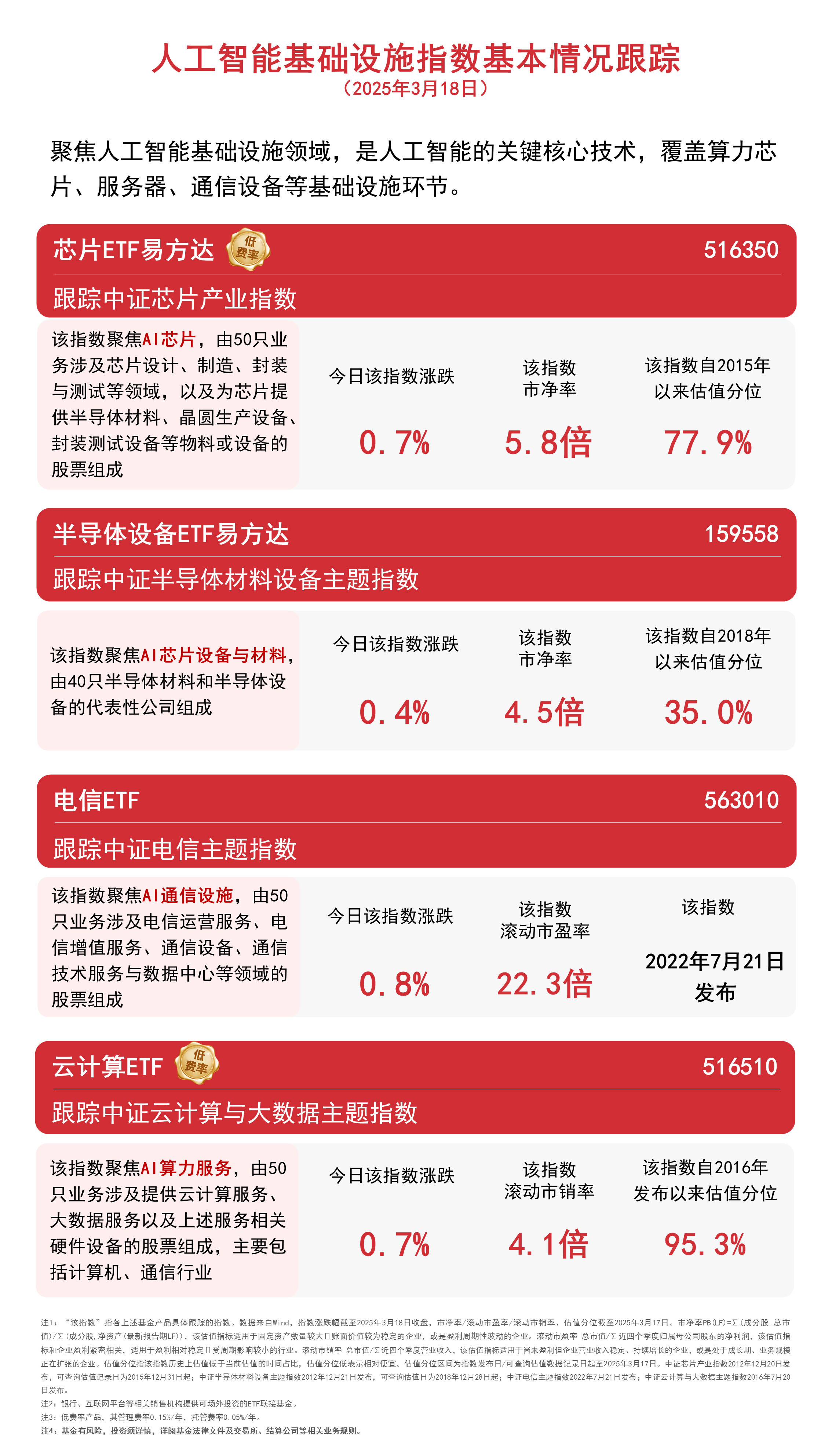 截至收盘,中证电信主题指数上涨0.8%,中证云计算与大数据主题指数、中证芯片产业指数均上涨0.7%,中证半导体材料设备主题指数上涨0.4%。 国泰君安证券表示,市场低估了DeepSeek生态对算力需求的放大效应,预计仅其 ...