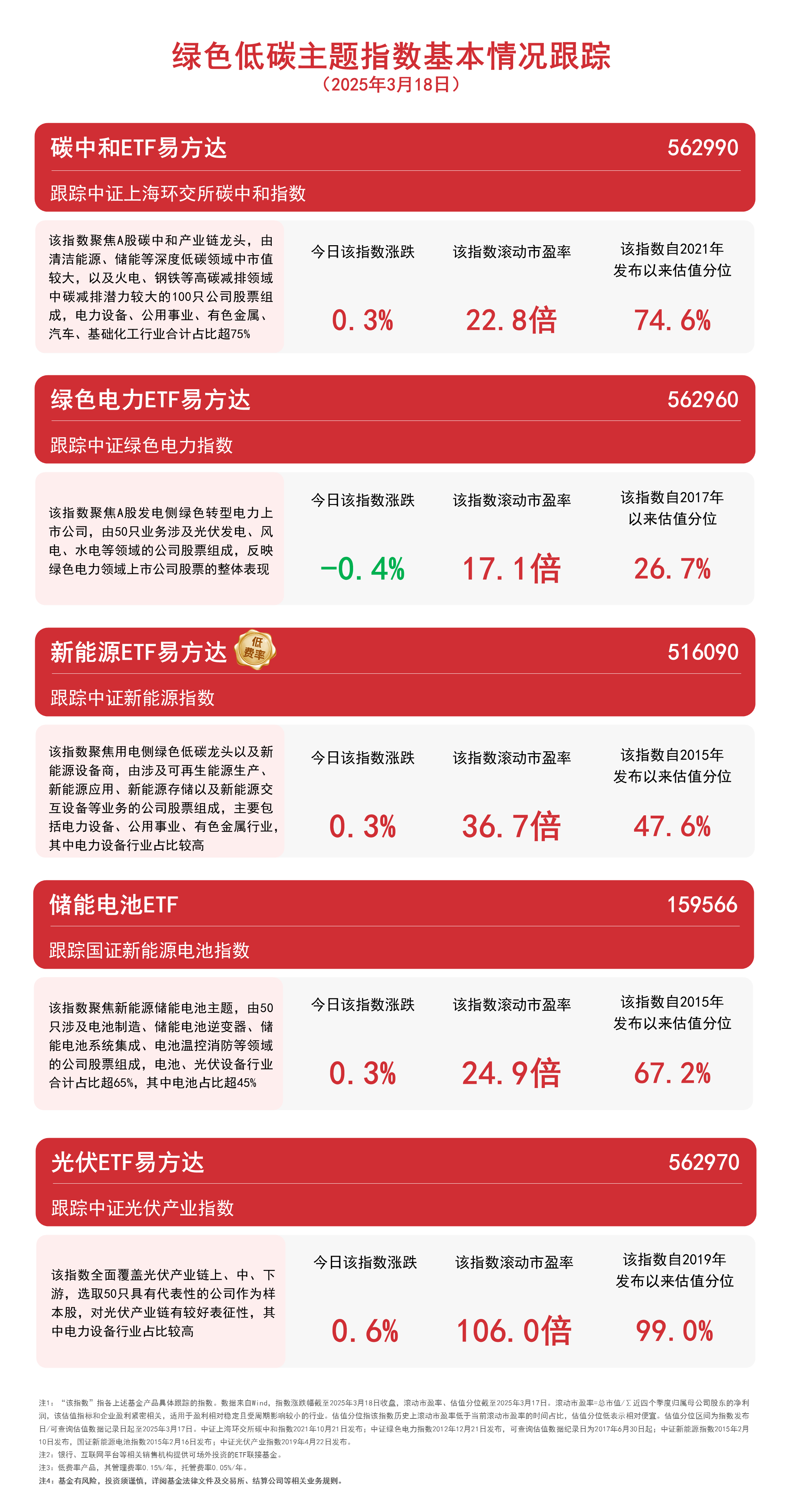 绿色低碳主题指数走势分化,关注光伏ETF易方达(562970)、绿色电力ETF易方达(562960)等 ...
