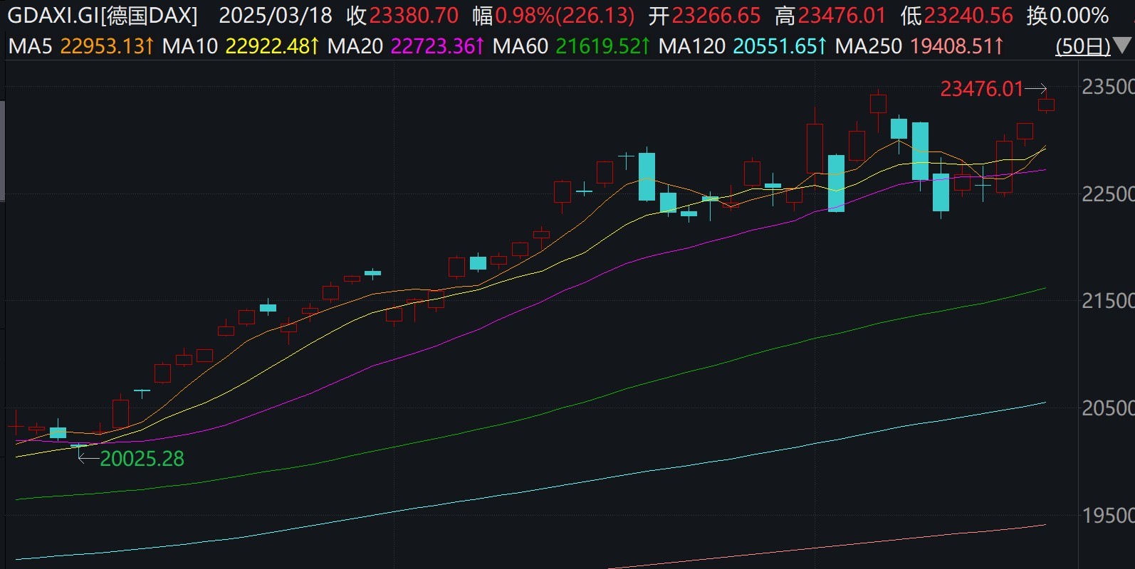 | 每经记者 叶峰 每经编辑 肖芮冬 德国DAX指数昨日涨0.98%,盘中触及23476.01点,创出新高。