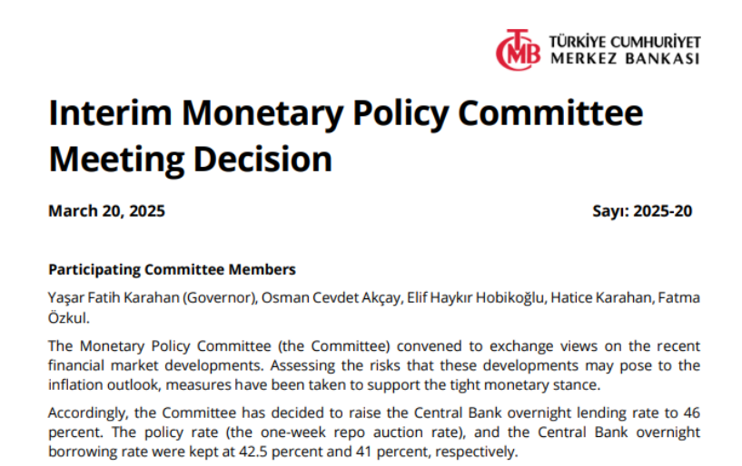 这几天,土耳其股市动荡不止。 当地时间3月21日,土耳其股市再度崩盘,主要股指BIST100指数暴跌超7%,并触及熔断;土耳其主要银行指数跌幅一度扩大至9.57%,创去年11月以来的最低水平。与此同时,加密货币市场亦全线大跌,比特币、以太坊均跌超2%。 有分析称,土耳其金融市场剧烈动荡的主要原因是,该国政局正面临巨大的不确定性。土耳其当局拘留了该国总统埃尔多安的主要政治对手伊马姆奥卢后,伊斯坦布尔及多个城市爆发了大规模示威游行。 值得一提的是,土耳其里拉汇率波动不大,截至北京时间21:00,美元兑里拉小幅上涨0.54%。这或许与土耳其央行的救市举措有关,土耳其央行货币政策委员会20日紧急召开临时会议,宣布将隔夜贷款利率提高200个基点。同时,土耳其央行21日宣布,将发行期限不超过91天的流动性票据以支撑土耳其里拉。 暴跌、熔断 当地时间3月21日,土耳其股市开盘后,各大指数全线暴跌。其中,土耳其主要银行指数跌幅一度扩大至9.57%,创去年11月以来的最低水平;主要股指BIST100指数暴跌超7%,并触及熔断。恢复交易后,跌幅继续扩大,截至北京时间21:00,BIST100指数大跌7.38%。 ![]() 与此同时,加密货币市场亦全线大跌,EOS一度大跌超8%,艾达币跌超4%,比特币、以太坊均跌超2%。 土耳其金融市场剧烈动荡的主要原因是,该国政局正面临巨大的不确定性。 土耳其当局周三拘留了该国总统埃尔多安的主要政治对手埃克雷姆·伊马姆奥卢,罪名包括个人腐败和协助恐怖组织。伊马姆奥卢被捕后,伊斯坦布尔及多个城市爆发了大规模示威游行,并与警方发生冲突。 此举对土耳其金融市场带来冲击,出现“股债汇三杀”,土耳其基准股指周三盘初一度暴跌6.9%,并触发熔断机制;土耳其里拉兑美元汇率当日暴跌超10%,创下历史新低;土耳其10年期政府债券收益率大涨约60个基点。 现年53岁的伊马姆奥卢是土耳其最大城市伊斯坦布尔的市长,他是土耳其最著名的反对派人物之一,系主要反对党共和人民党成员。 伊马姆奥卢于2019年当选伊斯坦布尔市市长,并于2024年再次当选。 共和人民党原定于在本周末将伊马姆奥卢提名为总统候选人,舆论普遍认为,伊马姆奥卢具备在选举中挑战埃尔多安的能力。 除了上述两项指控外,伊马姆奥卢还被指控领导犯罪组织、行贿和招标舞弊。 拘留事件发生的前一天,伊斯坦布尔大学宣布撤销伊马姆奥卢的学位,理由是存在违规行为。如果没有大学学位,伊马姆奥卢将失去竞选总统的资格。 伊马姆奥卢周三在社交媒体平台X上发布了一段视频,强调自己不会放弃,并将继续挺直腰杆面对压力。他表示,数百名警察被派到他家门口。 媒体公布的现场视频显示,身着防暴装备的警察和数十辆安保车辆停在伊马姆奥卢的家外面。 共和人民党领导人Ozgur Ozel将伊马姆奥卢被拘留描述为:“针对我们下一任总统的政变企图”。 土耳其下一次选举定于2028年举行,但如果埃尔多安希望再次参选,则可能提前进行。 埃尔多安已执政超过20年,他于2014年至今担任土耳其总统,并在2003年至2014年期间担任土耳其总理。土耳其原本是议会制国家,在2017年修宪公投中,该国转为总统制,总理一职也随即废除。 土耳其央行出手 在土耳其股市再遭暴跌的同时,土耳其里拉汇率逐渐走稳,波动收窄,截至发稿,美元兑里拉汇率小幅上涨0.54%,报38.01。 分析认为,这或许与土耳其央行紧急宣布的“救市”政策有关。 当地时间3月21日,土耳其央行声明称,将发行期限不超过91天的流动性票据以支撑土耳其里拉,流动性票据拍卖将于3月24日开始。 土耳其央行货币政策委员会于当地时间20日紧急召开临时会议,会后宣布将该行隔夜贷款利率提高200个基点(2个百分点)至46%。 ![]() 土耳其央行在声明中写道,货币政策委员会召开会议,就近期的金融市场动态交换意见,委员会评估了这些动态可能对通胀前景构成的风险,并采取措施支持紧缩的货币政策立场。 货币政策委员会决定将央行隔夜贷款利率提高至46%,政策利率(一周回购利率)和央行隔夜借款利率则分别维持在42.5%、41%。 此外,土耳其央行还采取了其他措施来限制市场波动。该行强调,为了维持金融市场的正常运转,必要时还将采取其他措施,“如果预见到通胀出现大幅且持续的恶化,货币政策立场将会收紧”。 有分析称,虽然土耳其央行维持基准利率不变,但隔夜利率提高至46%将推高商业银行提供资金的平均成本,有助于收紧金融状况。 受这一消息影响,土耳其里拉一度抹去日内跌幅。当地时间周三,里拉一度跌破1美元兑41里拉的水平。 Generali Investments新兴市场策略师Guillaume Tresca评论道:“这是对央行信誉的确认,并且昨天(周三)的事件更多的是政治性的。” 今年3月初,土耳其央行宣布将基准利率下调250个基点至42.5%。这是该国2024年12月降息后,第三次下调基准利率。 土耳其央行货币政策委员会当天在声明中指出,在通胀持续下降、物价稳定之前,土耳其将维持紧缩的货币政策。货币政策委员会将重点关注通胀走向,谨慎调整政策性利率。 土耳其统计局数据显示,今年2月,土耳其通胀率按年率计算为39.05%,是2023年年中以来最低水平。 (文章来源:券商中国) |