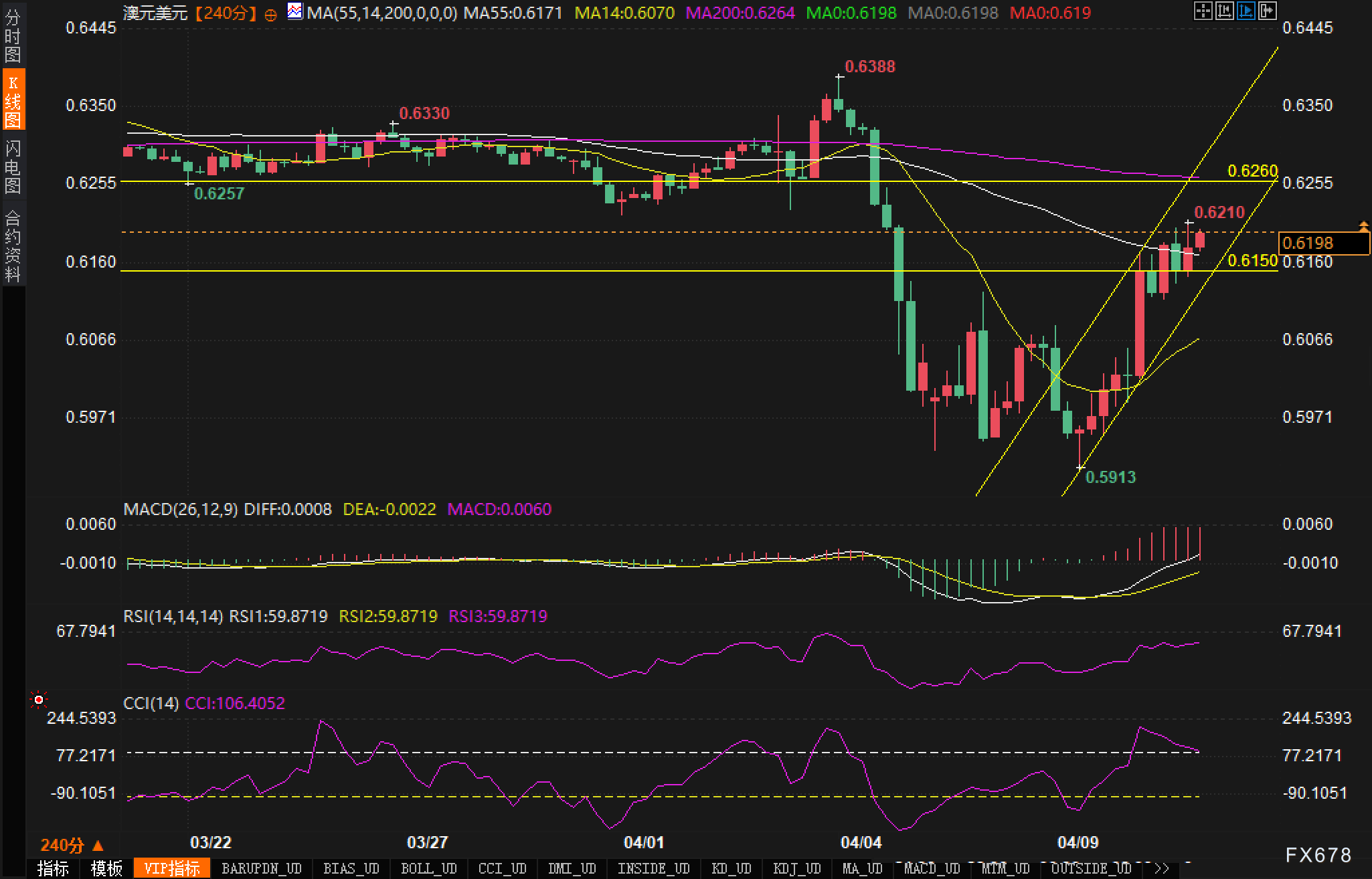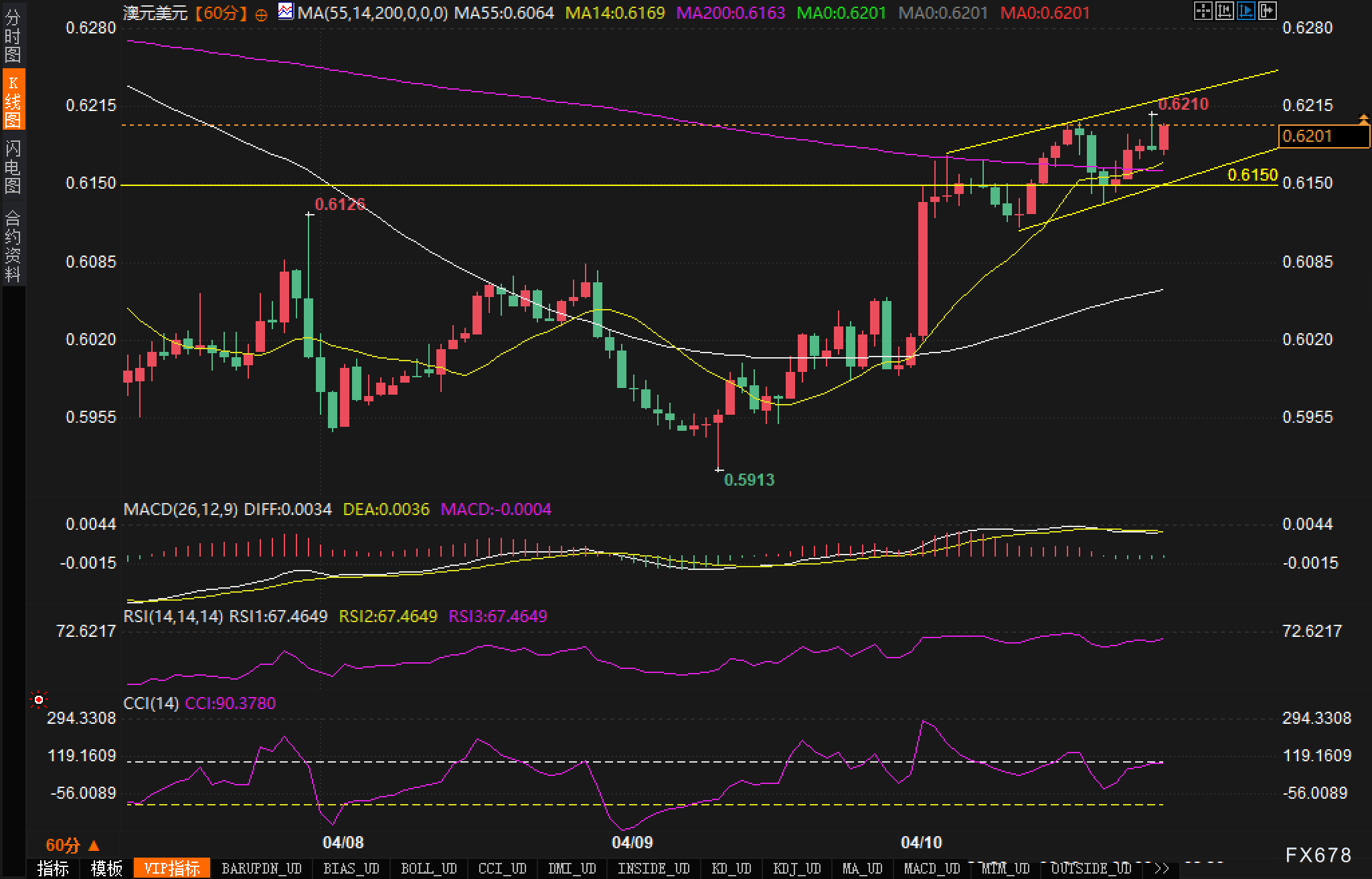 周四 4月10日 澳元兑美元汇价延续强劲上涨势头 北美时段交投于0 6200附近 自近期0 5913低点反弹以来 汇价已形成明显的上升通道 持续保持强势态势 基本面分析澳元继续带领市场参与者经历过山车般的震荡行情 周三 澳 ...