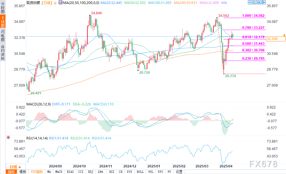 周四(4月17日)欧盘时段,白银价格下跌,跌破了32.50美元的50日均线,交易员对贵金属市场的整体回调做出反应。此前,黄金价格从历史高点大幅逆转,这表明在因通胀担忧和关税不确定性而强劲上涨之后,贵金属的涨势 ...