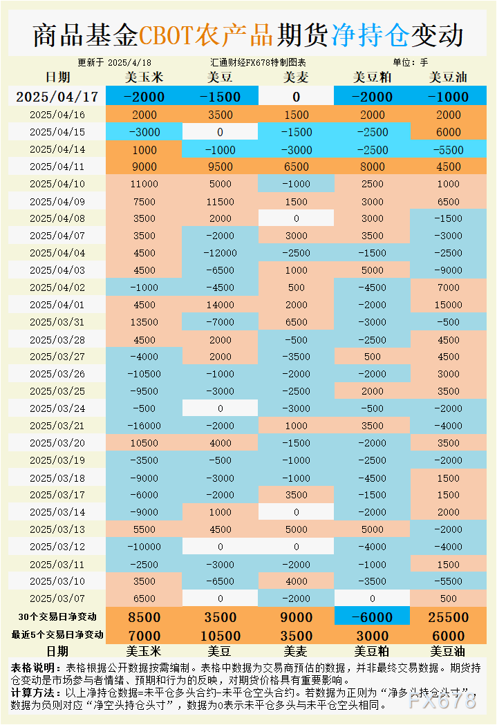 周五(4月18日),CBOT谷物期货市场因耶稣受难日休市一日。在此节前最后一个交易日内,市场整体维持震荡偏弱格局。小麦在美平原干旱担忧下小幅收高,玉米与大豆则延续获利了结压力回落,豆粕、豆油弱势调整。交易情绪谨慎,资金在节前主动减仓避险,而天气、播种进度与出口基差成为多空拉锯的主战场。 ![]() CBOT玉米主力合约周四收于4.90-1/4美元/蒲式耳,日内小幅回调1-1/2美分。天气上,美中西部迎来降雨,对当前播种节奏形成一定扰动,尤其是伊利诺伊、印第安纳、密苏里等地预计降雨量或超4英寸,将限制短期田间作业。不过,目前美国国内播种进度并未明显滞后,市场对夏季天气走势更为关注。 持仓方面,4月17日商品基金当日减持玉米净多头2000手,为连续三日的净减仓动作。尽管如此,过去五个交易日,基金仍累计增持净多头超2.4万手,显示中期仍看涨为主。结合CIF/FOB基差来看,4月装运的玉米驳船CIF报价维持在5月合约上方73美分/蒲式耳,表明出口渠道需求尚可。FOB基差小幅走低至86美分,显示离岸买盘略有放缓,但整体稳定。 同时,伊利诺伊河和密西西比河部分区域驳船运价回落,也压制了驳船成本,有利于中短期出口恢复。国际市场方面,伊朗发布新的饲用玉米采购招标,可能对美玉米出口带来边际利好。 展望来看,玉米在播种初期天气干扰与出口恢复的交织下,短期盘面易波动,中期则需密切关注基金持仓是否重拾多头动能。 二、大豆:出口基差承压,基金调仓意图转淡 CBOT大豆主力合约周四收于10.36-1/2美元/蒲式耳,日内回落2-1/4美分。盘面表现疲软主要受到节前资金获利离场以及出口基差回落的共同影响。 从最新的基差来看,CIF美湾4月装运大豆驳船报价较5月期货下调至78美分/蒲式耳,5月装运则为77美分,均环比下降1美分。与此同时,FOB出口报价虽然略有提升,但5月装运FOB基差为89美分/蒲式耳,整体显示出口节奏趋缓。这与美国农业部公布的出口销售数据“符合预期”相呼应,市场对出口增长缺乏信心支撑。 在持仓方面,商品基金4月17日净减持大豆空头1500手,延续三日调整走势。但回看过去五个交易日,累计仍增持9500手净多头,反映出资金对大豆走势并未全面看空。 短线来看,大豆面临出口基差疲软与基金多头回吐双重压制;中期走势仍需跟随进口政策及美国播种情况变化。 三、豆粕:现货需求转淡,持仓转弱后续仍承压 豆粕期货延续调整,CBOT 5月合约周四收于295.60美元/短吨,跌幅1.10美元。现货市场方面,美国豆粕基差报价大致维持平稳,主要受到压榨厂进入季节性检修影响。根据加工商反馈,部分中西部工厂近期已陆续减产,导致整体日均压榨量连续三月下滑,拖累现货供应与出口活跃度。 出口方面,美国农业部数据显示,截至4月10日当周,美豆粕出口为146,200吨,环比下降47%,明显低于近一个月均值,市场消化不利。 基金方面,豆粕在4月17日净减持2000手,为连续两日净减仓。在过去30个交易日,豆粕净多头累积仍显疲软,甚至出现阶段性转空,显示市场对未来需求预期信心不足。尤其是南美豆粕持续释放出口供应的背景下,美豆粕面临价格竞争劣势,资金并未大规模重新布局多头。 后市来看,豆粕短期内或维持偏弱震荡,等待美豆压榨恢复与出口转强信号。 四、豆油:基金反复调仓,节前空头小幅压盘 CBOT豆油延续弱势整理,主力5月合约在周四小幅下跌,基金数据显示当日净减仓1000手,连续两日减持多头。尽管30日累计持仓仍为净多格局,但节前调仓迹象明显。 现货方面,美国国内豆油报价整体走稳,各地加工厂压榨计划暂未大幅调整。中短期来看,美豆油面临来自南美及东南亚植物油市场的价格压力。此外,部分国家(如伊朗)发起豆粕招标,但暂未出现豆油的明显外部新增需求,这在一定程度上削弱了出口带动。 值得注意的是,豆油在前期一度获得资金追捧,但伴随原油价格近期震荡回落及美生物燃料政策预期的边际弱化,当前多头情绪正逐渐降温。 展望未来,豆油走势或继续围绕基金持仓波动展开,等待出口需求或原油走势的新线索指引方向。 五、小麦:干旱支撑基差,基金持仓进入平衡博弈 小麦期货周四小幅收高,CBOT主力合约报5.48-3/4美元/蒲式耳,涨幅1美分。盘面主要受美国平原干旱担忧驱动。根据最新数据,堪萨斯州66%的地区仍处于不同程度的干旱之中,高于上周的55%。而过去两周降雨仅为0.1英寸,令市场对冬小麦产量预期持续下修。田间实况显示,部分麦田叶片已开始变黄,反映出产量压力真实存在。 现货基差方面,南部平原HRW小麦基差维持稳定,因农户惜售导致市场供应收紧。出口层面,突尼斯和阿尔及利亚的最新采购总量已达70万吨以上,反映全球采购节奏稳定。美国小麦能否参与其中尚未确定,但国际采购带来的整体需求氛围有所支撑。 基金方面,当日基金在小麦持仓上维持多空均衡,未出现明显方向。过去五日累计增持小麦净多头量为6500手,反映中期多头仍具备潜力,尤其在天气预期未能改善前,市场存在博弈的空间。 总体而言,小麦价格短期仍受制于降雨预期博弈,但持仓结构平衡,技术上存在震荡上行空间。 六、总结与展望 目前CBOT谷物期货市场在春播季节、天气扰动与节前调仓交织下,整体波动加剧。商品基金虽在日内表现偏空,但整体持仓结构显示:中期资金情绪尚未全面转弱。 玉米:短线波动加剧,但出口基差稳定支撑中期行情; 大豆:出口需求疲