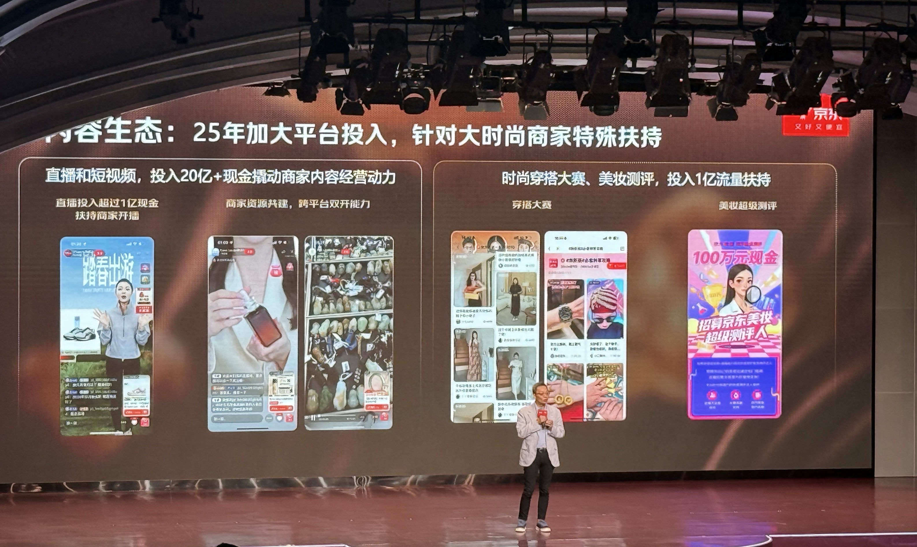 每经记者 赵雯琪 每经编辑 张益铭 外卖大战如火如荼,但京东的野心不止于此。 “未来三年,大时尚的关键词依然是增长、增长、增长。”4月22日,京东大时尚相关负责人表示。自去年三季度追加10亿元投入强势入局服饰战场后,京东的攻势愈发猛烈。 当日(4月22日),京东大时尚在合作伙伴大会上发布“品类击穿-大单款”与“品牌双500”两大战略。京东方面表示,要在鞋服等品类打造全网最具质价比大单款,同时要助推品牌实现高质量增长,在细分赛道快速提升市场占有率。值得一提的是,京东还针对新商家推出专属扶持政策,帮助商家在开店初期站稳脚跟。 早在今年3月,淘宝先行发布服饰行业2025年新战略,同时表示将力推原创品牌和品质商品。核心内容主要包括三个方面:扶持原创商家、支持品质商品、为商家降本增效,全面改善营商环境。 在电商平台中,服饰品类始终占据电商战略高地,“得服饰者得天下”一度成为行业共识。这一品类不仅贡献着上亿元规模的GMV(商品交易总额),更是用户活跃度与平台生态健康度的晴雨表。当前,在国内的几大电商平台中,无论是阿里“淘天系”(天猫淘宝)、还是新崛起的拼多多、抖音电商等,都在将服饰品类作为重点发力的领域,并且形成了各自优势。 如今,各大平台正以差异化路径重塑服饰电商的竞争维度,一场围绕用户时长、商家生态与产业话语权的持久战已然打响。 京东副总裁、京东零售平台运营与营销中心负责人邵京平介绍商家扶持政策 图片来源:每经记者 赵雯琪 摄 京东加码鞋服等品类 要“打造全网最具质价比大单款”一直以来,京东以3C家电构建的“男性主场”特征显著,男性用户占比长期超60%。而服饰、美妆作为典型女性向品类,承载着其用户结构转型的关键使命。 因此,服饰、美妆成为京东必须要拿下的战场。去年9月,京东宣布追加10亿元投入全面布局服饰品类,高调入局服饰、时尚电商领域。 在去年三季度电话会上,京东集团CEO许冉在业绩会上透露,中国电商市场存在巨大潜力,京东计划通过提升用户体验和用户增长来保持竞争优势。京东将持续投资于自营供应链、物流服务和用户心智强化,特别是在服装和美妆等品类上推出创新服务,以吸引更多用户。 而这一战略也取得了明显的成效。 京东2024年财报显示,去年四季度,京东的季度活跃用户数和购物频次同比继续保持双位数增长。第三方商家数量继续保持同比高速增长,在第三方商家成交的用户数和订单量也在增长。 据京东大时尚在发布会上披露的数据,过去一年间,依托服饰品类追加的10亿元投入,京东大时尚已成为品牌增长最快的土壤。2024年,京东大时尚成交额破亿元的品牌数量、店铺数量均实现同比双位数增长。人群方面,女性用户、高消费人群占比、购物频次持续提升。这也意味着,服饰和美妆等赛道正在为京东带来更多增量空间。 面对这样的增长势头,京东决定继续加大布局力度。 京东方面表示,未来,京东大时尚将重点夯实鞋服品类质价比、运动品类专业度等差异化优势,打造全网最具质价比大单款,带给消费者确定性购物体验;同时,京东大时尚将通过爆款打造、新品运营,并通过1+1店铺联动、品牌维度人群运营等举措,助推品牌实现高质量增长,在细分赛道快速提升市场占有率。 值得一提的是,除了优化商品供给,京东大时尚还将推出更多服务保障体系,包括送装一体、开箱即骑等人性化特色服务,和隔夜达、爆品秒送等超速快递体验。同时,京东大时尚也将正式启动品类合伙人招募,加码投入站内外营销资源,提升流量扶持,并给予更大规模和更灵活的激励政策。 在商家扶持方面,京东表示,将推出包括0元入驻、最高3%佣金、最多累计60万元返点等措施,帮助商家在开店初期站稳脚跟。同时,依托京东2000亿元出口转内销扶持计划,京东大时尚也将帮助受贸易波动影响的商家开辟内销通道,开展多种招商模式,通过流量倾斜和全渠道营销支持,加快打开销路。 4月23日,互联网分析师庄帅在接受《每日经济新闻》记者微信采访时表示,服饰业务属于季频品类,可以有效提升用户在京东的购买频次;另外,服饰属于非标品,价格敏感度较低;最后,服饰品类上新频次也较高,商家在营销推广上也更愿意在平台做更大的投入,这可以有效提升京东的利润率。 在他看来,京东的优势在于仓配体系提供更好的用户体验,结合自营采购还能让购物体验标准化,而且用户的消费力比较强。 巨头加码服饰赛道 2025年电商时尚大战怎么打?当各平台都在服饰赛道加码时,如今电商平台的竞争维度已从单纯的流量争夺转向生态能力比拼。 从现有的电商格局来看,天猫依托完整的内容矩阵(逛逛+直播+旗舰店)构建消费闭环;抖音凭借兴趣电商实现“爆款速生”;拼多多坚守白牌低价策略。京东则打出差异化组合拳:以自营物流保障体验,用开放生态吸纳长尾供给,借3C用户基础实现跨品类导流。 强手如云,京东想要突围也并非易事。 去年“双11”期间,抖音电商公布的一组数据显示,在10月8日至11月2日期间,抖音电商近七成服饰品牌成交翻倍。时尚服饰品牌表现尤为亮眼,整体销售额同比增长近90%,商品卡带动的销售额同比增长超140%。 而在今年年初,淘宝天猫在服饰、美妆、运动户外三大行业试点推出优质品牌限时返佣激励政策,截至今年3月底,90%品牌达成双位数高增长目标