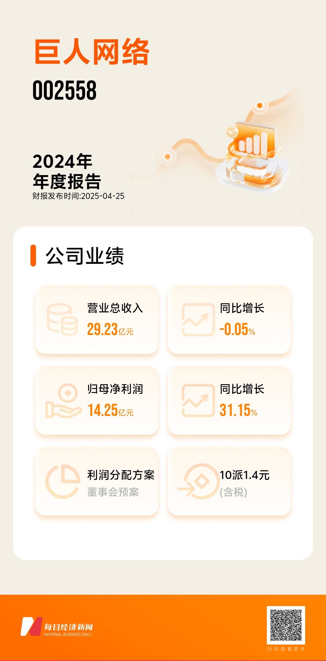 2024年,巨人网络营业收入为29.23亿元,与上年基本持平,归母净利润14.25亿元,同比增长31.15%。旗下《王者征途》小程序游戏全年贡献流水6亿元,成为新增长引擎。巨人网络还积极布局AI领域,构建起自研大模型为核心 ...