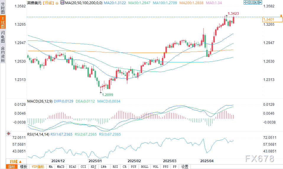 周一(4月28日)美盘时段 ,英镑本周开局良好,有望在4月底表现强劲。随着美元持续走弱以及风险偏好提升,英镑盘中上涨了约0.63%。英镑兑美元在从1.3279的日低点反弹后,交投于1.3400附近。本周,交易员们将迎来关键的英国住房数据和繁忙的美国经济数据发布日程。 ![]() 华尔街股市交易录得上涨,这对美元等避险资产的需求构成了不利因素。美国经济数据发布稀少,且美联储官员在5月会议前进入静默期,这使得交易员们更关注英国数据的发布。英国工业联合会(CBI)披露,4月份零售销售数据仍为负值,但从3月份的-41改善至-8,为去年10月以来的最高水平。 市场预期英国央行(BoE)不会像预期的那样鸽派,这推动了英镑兑美元汇率上涨。利率概率显示,市场参与者预计到今年年底将有87个基点的宽松幅度。 美国方面,市场预计美联储将降息88个基点。由于投资者仍对美国的贸易政策以及近期美元疲软感到担忧,英镑兑美元汇率有望进一步走高。 巴克莱银行的分析师仍然看好英镑,尤其是兑欧元的表现。分析师表示:“与欧元区相比,英国对直接关税的抵御能力更强,这意味着需求受到的损害较小,从而抵消了财政空间更为有限所带来的拖累。” 本周,英国的经济数据发布日程将以房价数据为主。相反,在美国,交易员们正关注2025年第一季度的国内生产总值(GDP)数据、美联储青睐的通胀指标核心个人消费支出物价指数(CorePCE)、供应管理协会(ISM)制造业采购经理人指数(PMI)以及4月份的非农就业数据。 技术分析 ![]() 英镑兑美元汇率仍偏向上涨,尽管多头未能果断突破年初至今(YTD)的高点1.3423。若突破该高点,将进一步试探1.3450,之后则挑战1.3500。 另一方面,如果英镑兑美元跌破1.3400,下一个支撑位将是1.3350,随后是位于1.3273的50日简单移动平均线(SMA)。 北京时间0:38,英镑兑美元报1.3400,涨幅0.66%。 ![]() |