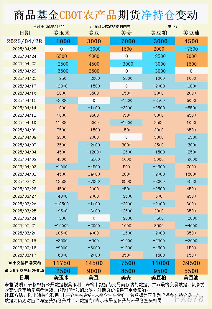 周二 4月29日 芝加哥期货交易所 CBOT 谷物与油籽期货市场走势分化 反映基本面变化与持仓调整引发的复杂情绪 玉米和大豆期货因美国播种进度加快及关税言论影响承压 分别下跌0 2 和0 07 小麦期货因逢低买入反弹0 8 ...